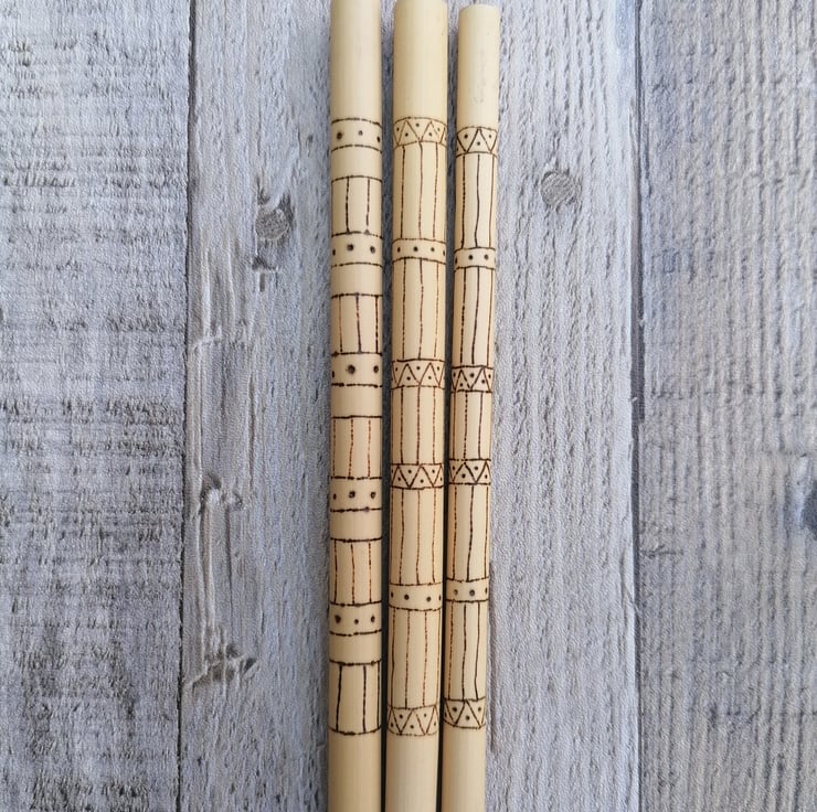 Looking for new ideas of objects I could pyrograph, I found bamboo straws and as a good alternative option to plastic straws, a decorated bamboo straw is unique and quirky.