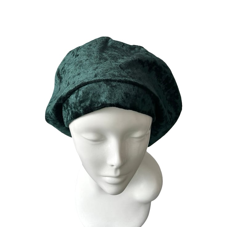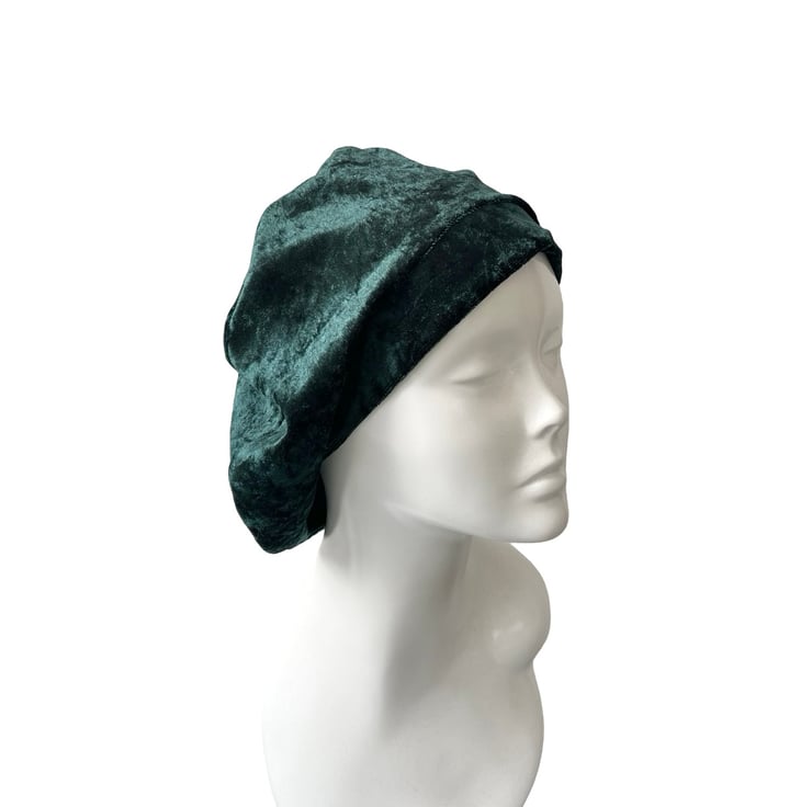 Made from luxuriously soft crushed velvet, this beret drapes beautifully and adds an elegant yet casual flair to any outfit. Whether you're looking for a fashion-forward accessory, a modest head covering, or a lightweight hat for hair loss, this versatile beret is a must-have.