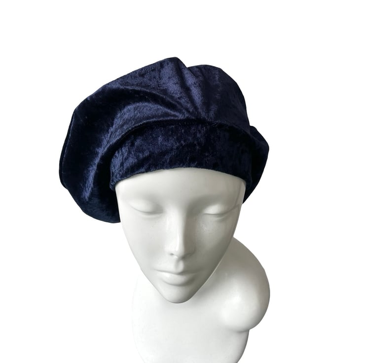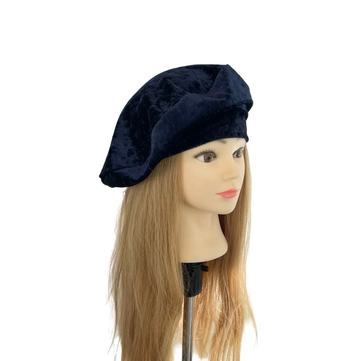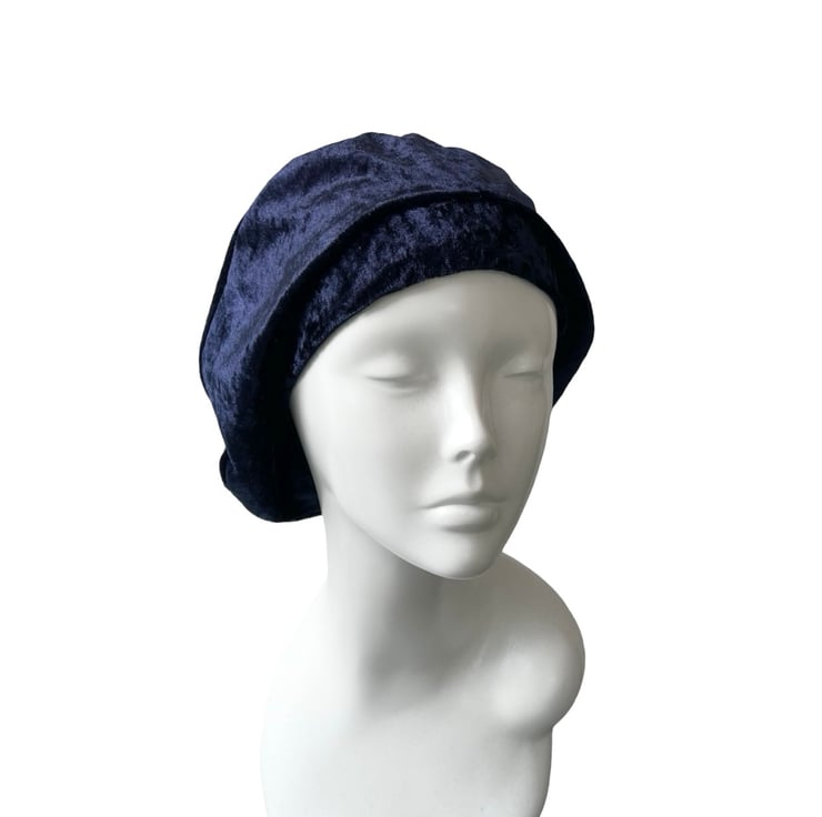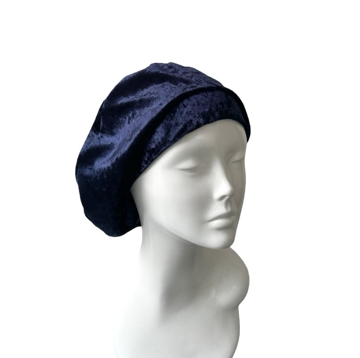 Made from luxuriously soft crushed velvet, this beret drapes beautifully and adds an elegant yet casual flair to any outfit. Whether you're looking for a fashion-forward accessory, a modest head covering, or a lightweight hat for hair loss, this versatile beret is a must-have.