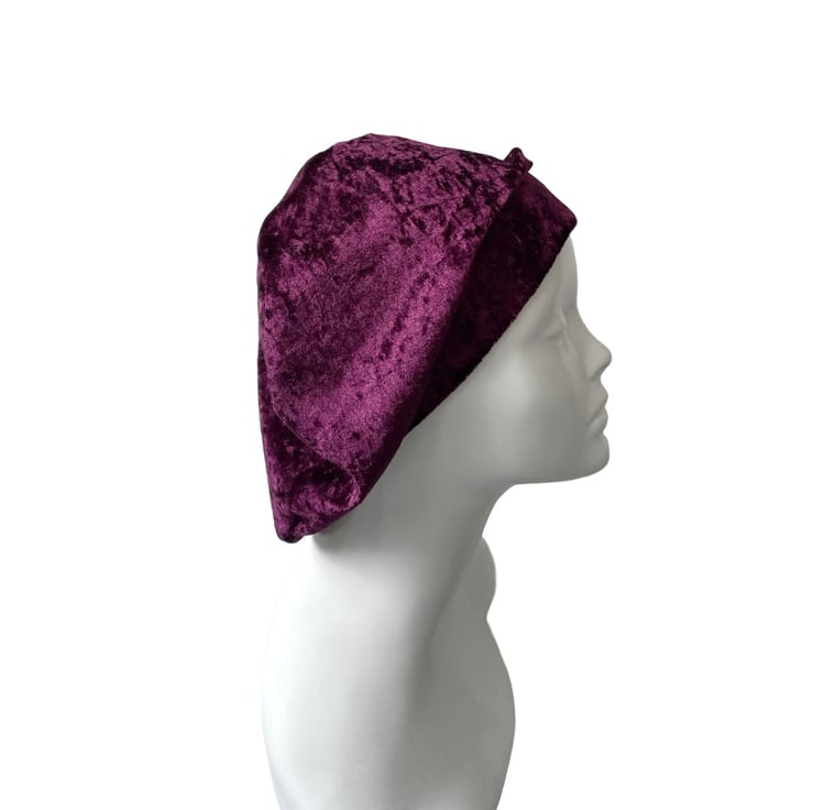 Made from luxuriously soft crushed velvet, this beret drapes beautifully and adds an elegant yet casual flair to any outfit. Whether you're looking for a fashion-forward accessory, a modest head covering, or a lightweight hat for hair loss, this versatile beret is a must-have.