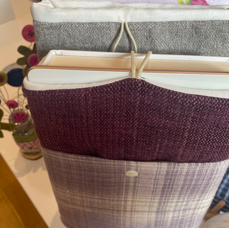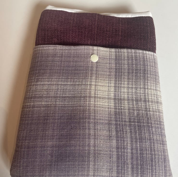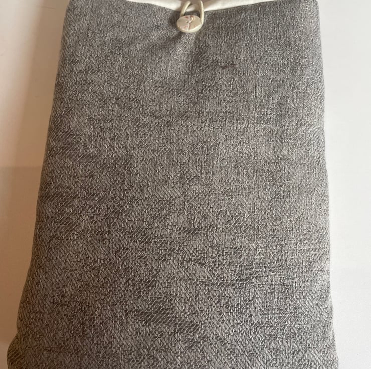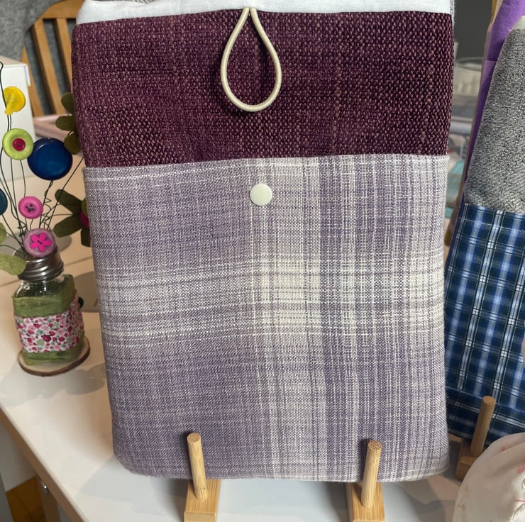 This lovely book sleeve is hand made with predominantly recycled materials. Some parts have newly sourced materials (e.g., buttons, thread and hair ties etc). It is 8 x 10 inches (approx) This has a pocket on one side for additional items such as pens, notebooks or snacks. These are so handy and such a unique quality handmade gift that really shows you care.