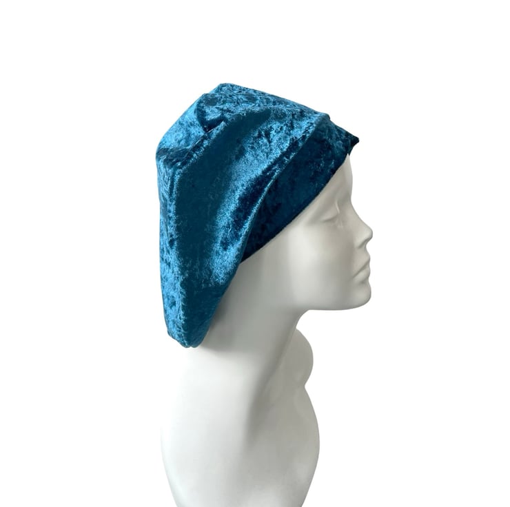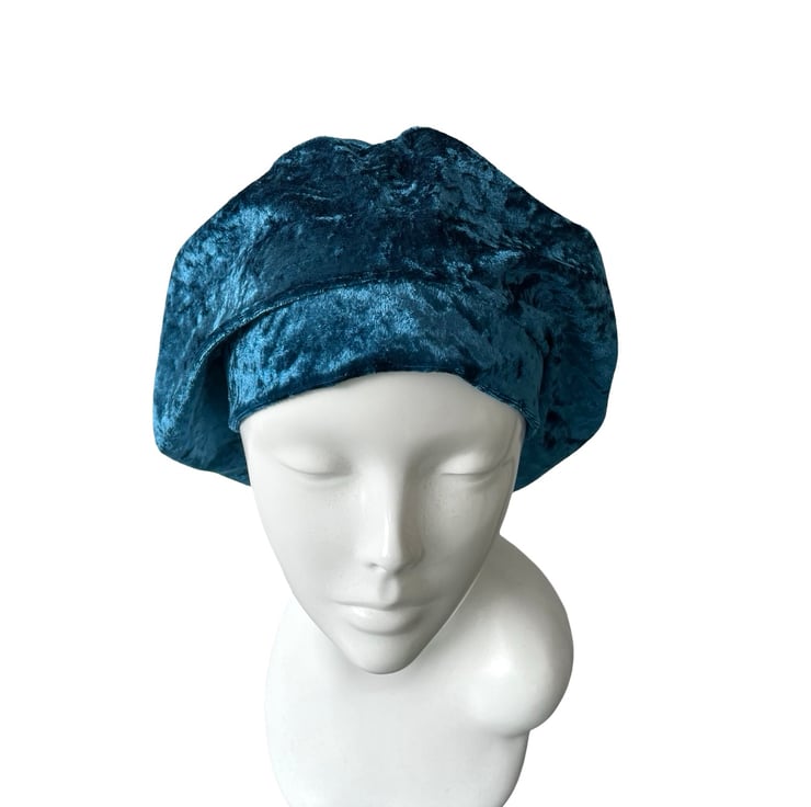 Made from luxuriously soft crushed velvet, this beret drapes beautifully and adds an elegant yet casual flair to any outfit. Whether you're looking for a fashion-forward accessory, a modest head covering, or a lightweight hat for hair loss, this versatile beret is a must-have.