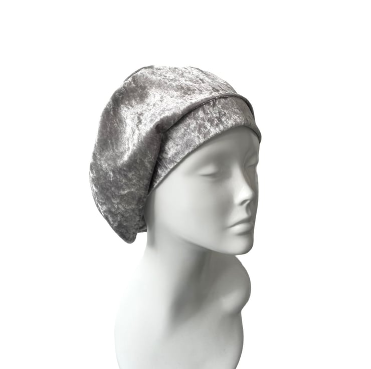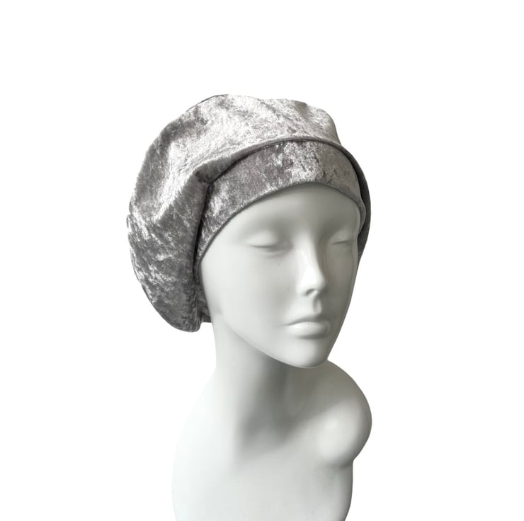 Made from luxuriously soft crushed velvet, this beret drapes beautifully and adds an elegant yet casual flair to any outfit. Whether you're looking for a fashion-forward accessory, a modest head covering, or a lightweight hat for hair loss, this versatile beret is a must-have.