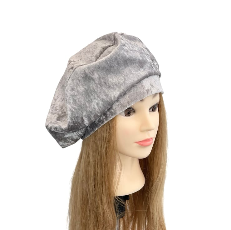Light Grey Crushed Velvet Beret Hat Stylish Slouchy Hat for Women Retro Vintage
