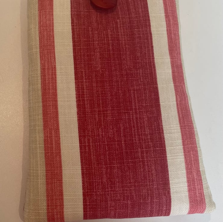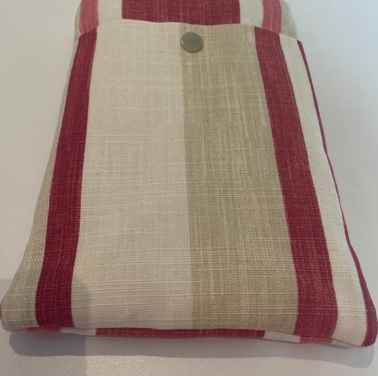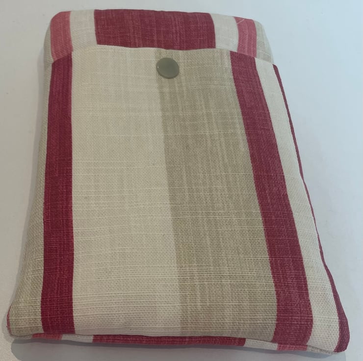 This lovely book sleeve is hand made with predominantly recycled materials. Lots of people love these when travelling. Some parts have newly sourced materials (e.g., buttons, thread and hair ties etc). It is 7.5 X 5.5 inches (Approx.) This has a pocket on one side for additional items such as pens, notebooks or snacks. This will hold a small book but has been specifically designed for standard sized Kindles (15.5cm x 11 cm). Please check measurements of your device before ordering to ensure fit.