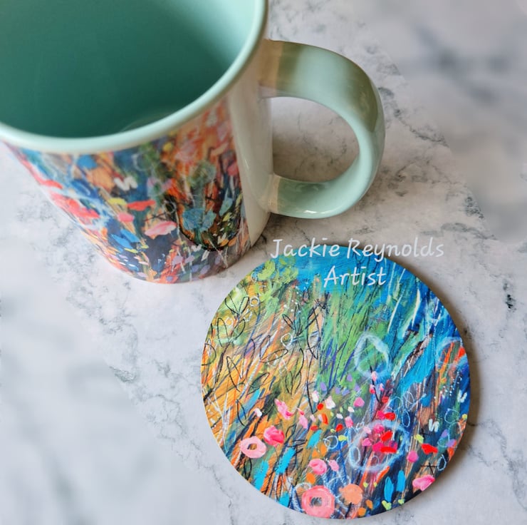 Round MDF coasters with cork backing, bright vivid colours and beautiful glossy finish.