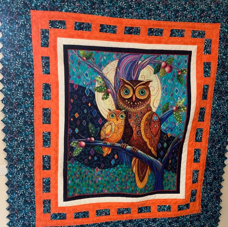This is a printed panel that I have added borders to, finally added a prairie point edge.