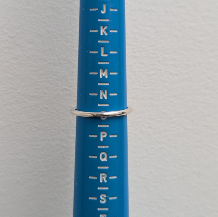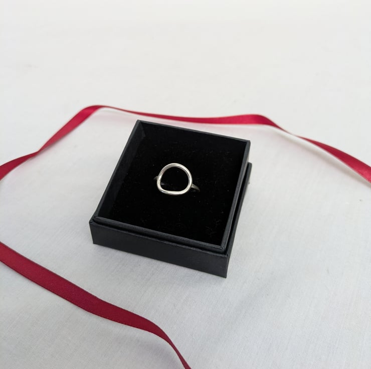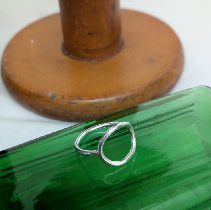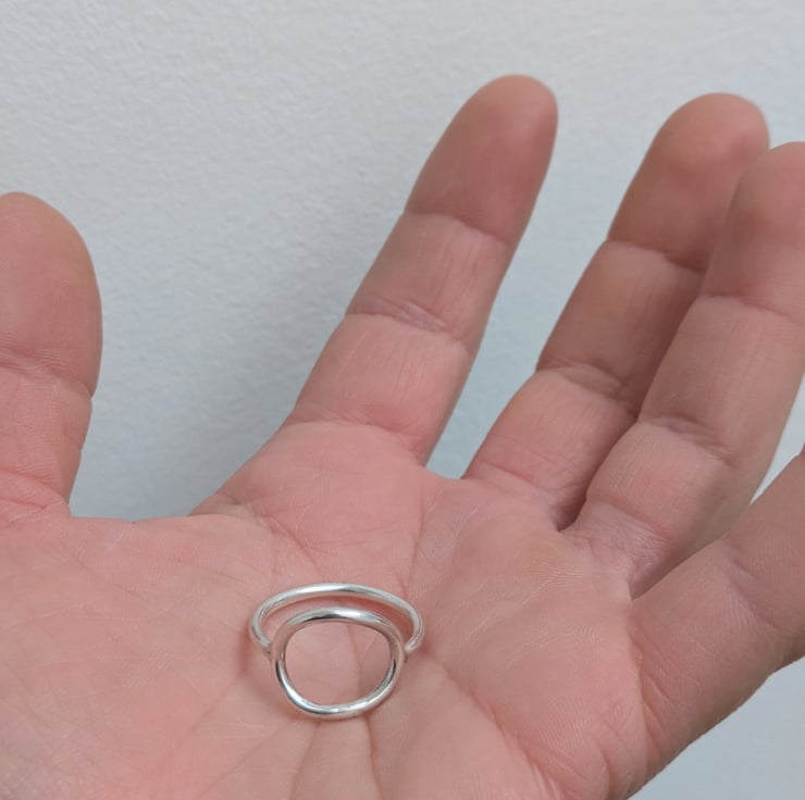 The loop ring in solid sterling silver. A beautifully simple design, and very comfortable to wear. This one is a size O, around a medium.