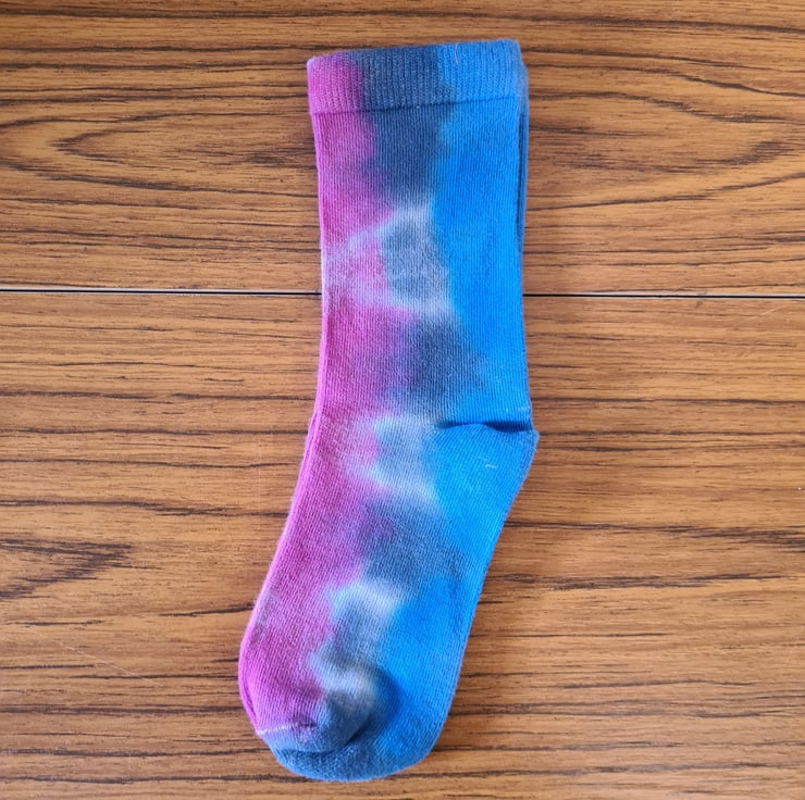 3 pairs of tie dyed socks, hand dyed with professional dyes UK size 9-12.