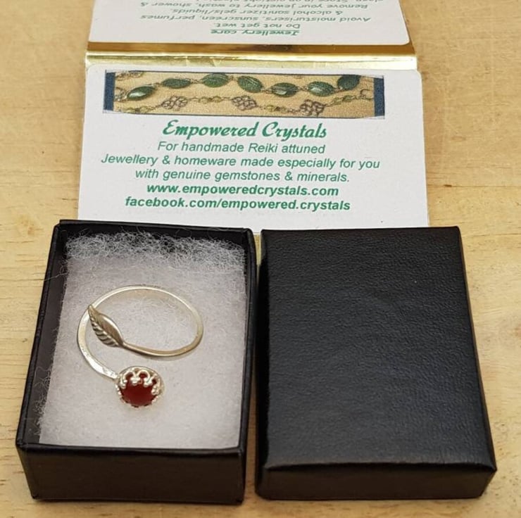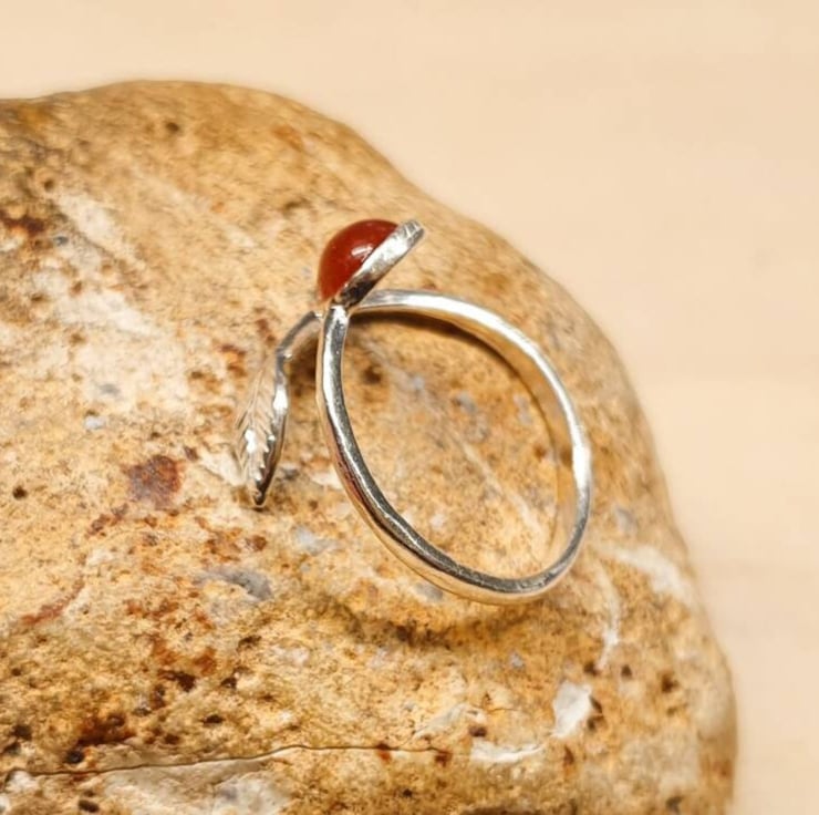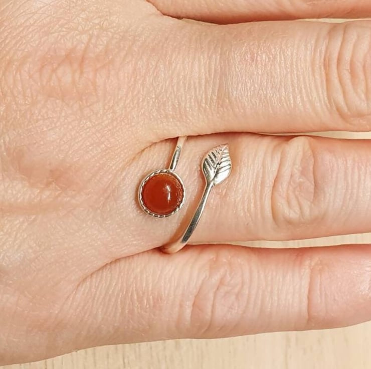 This is a women's sterling silver round red carnelian leaf ring. Perfect for a July birthday present Stones will vary from the photos.