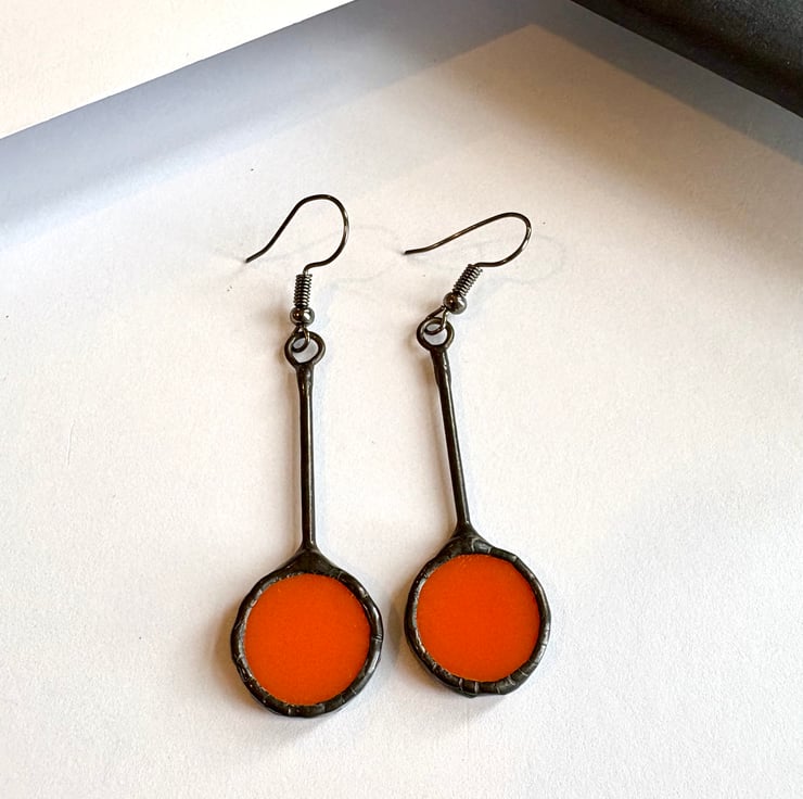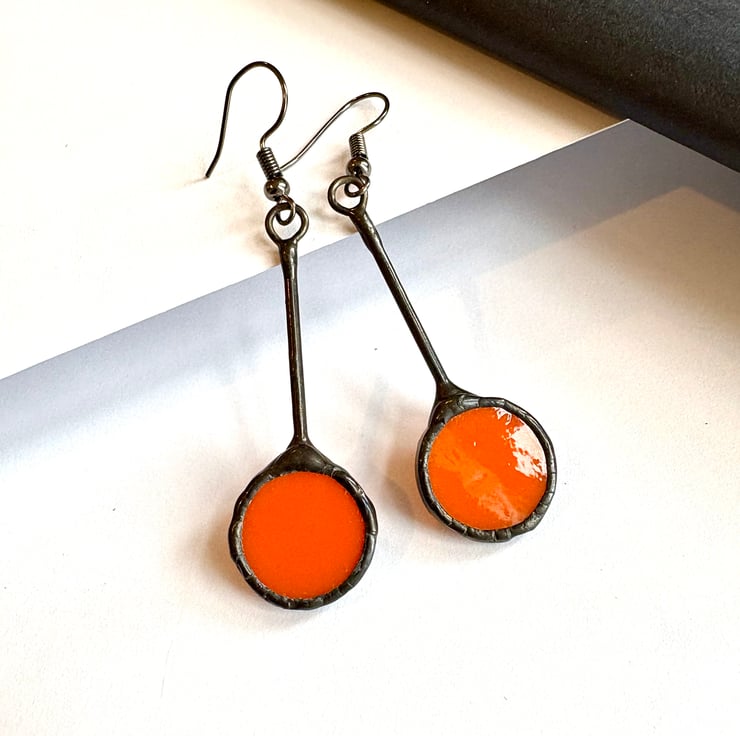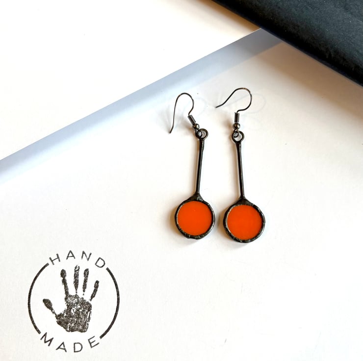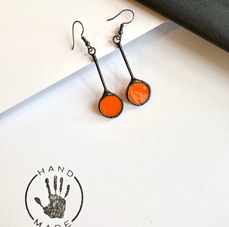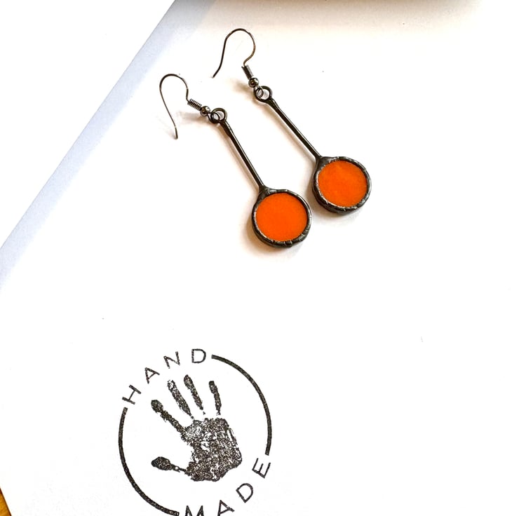Orange stained glass dangle earring, minimalist jewellery, everyday, handmade