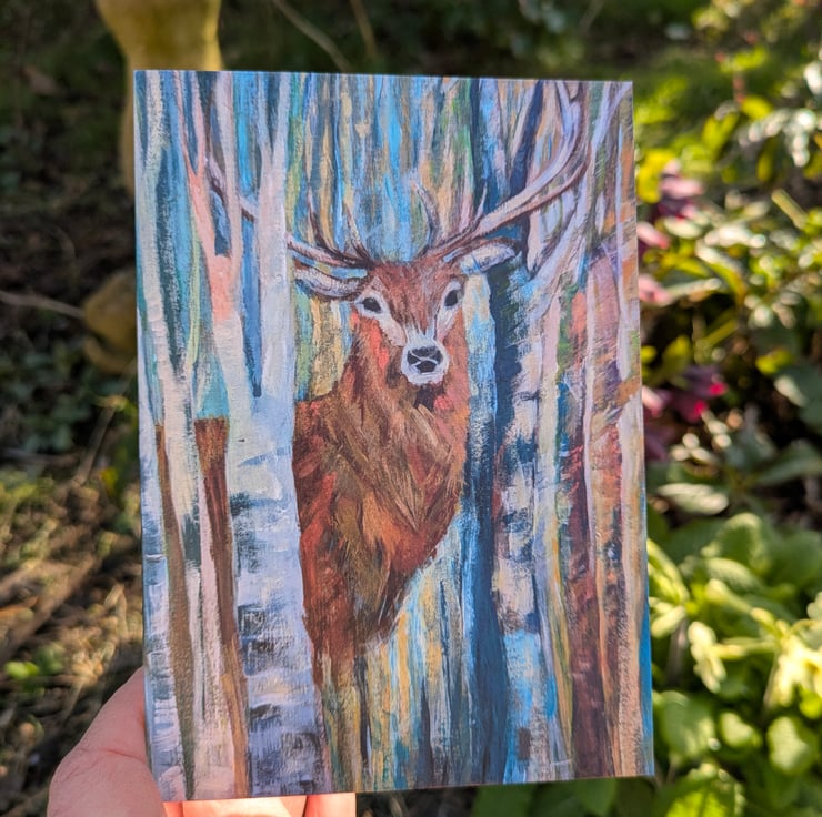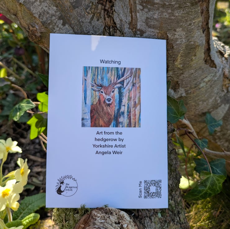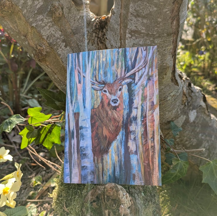 ‘Watching’ is a beautiful card from an original acrylic painting capturing a deer watching through the trees. The inside is blank ready for you to add your own special message making perfect for all occasions.