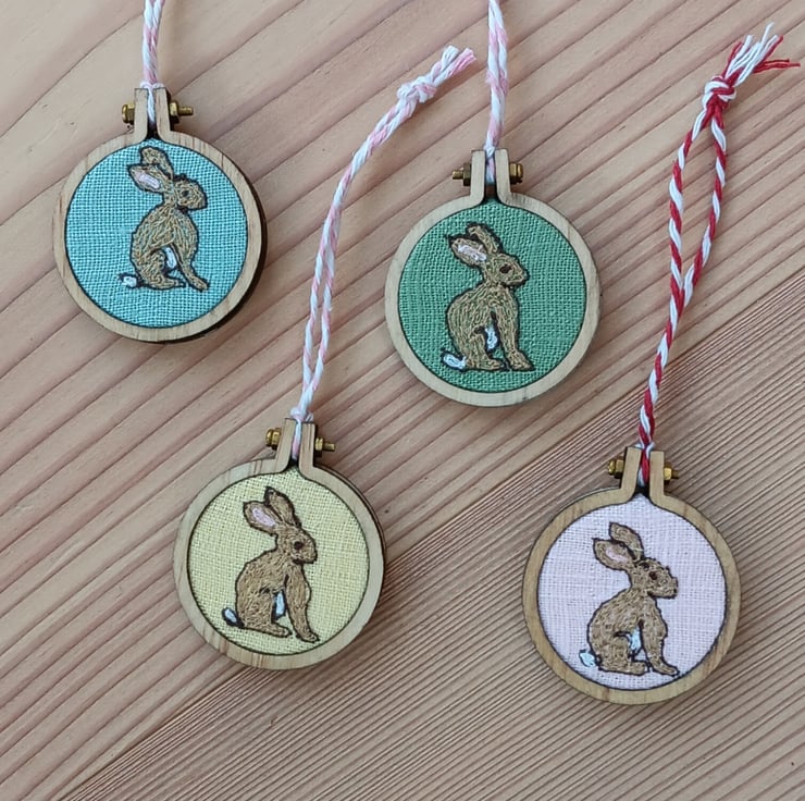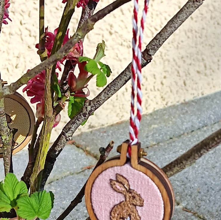 An adorable mini embroidered hoop hanging decoration, perfect for spring or Easter.