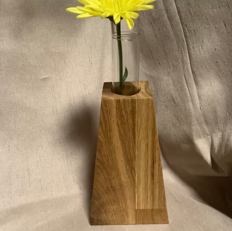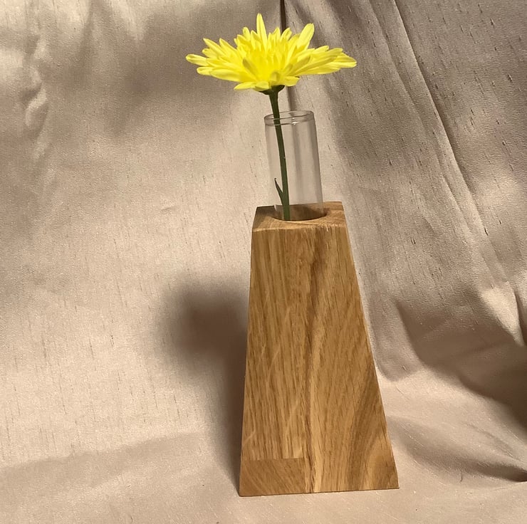 Just in time for Mothers Day, a beautiful handmade Oak Bud Vase made from reclaimed Oak with a glass test tube and finished with organic linseed oil and beeswax.