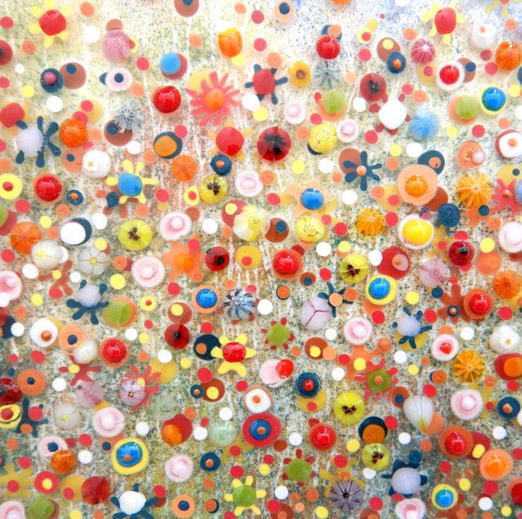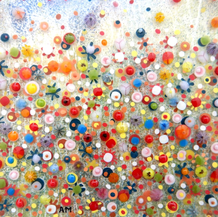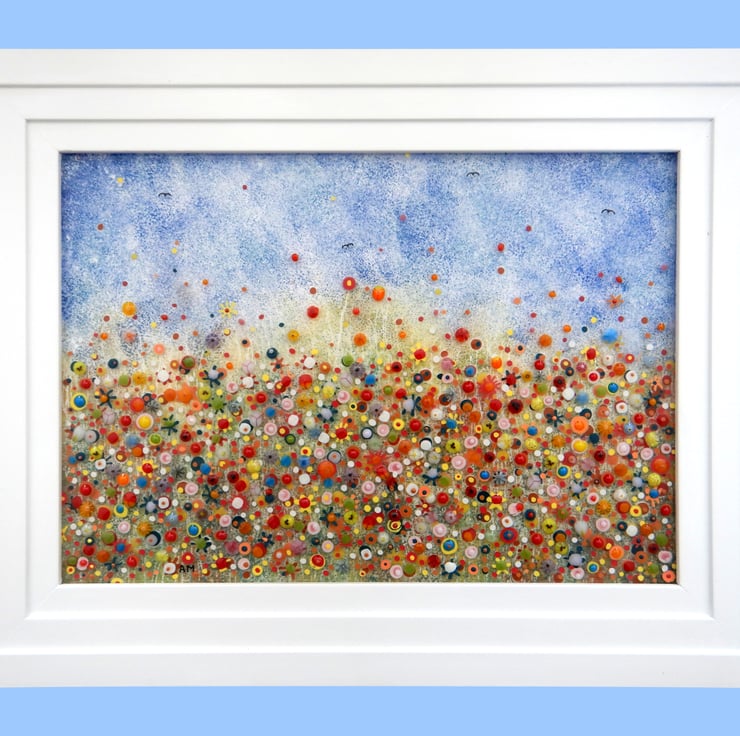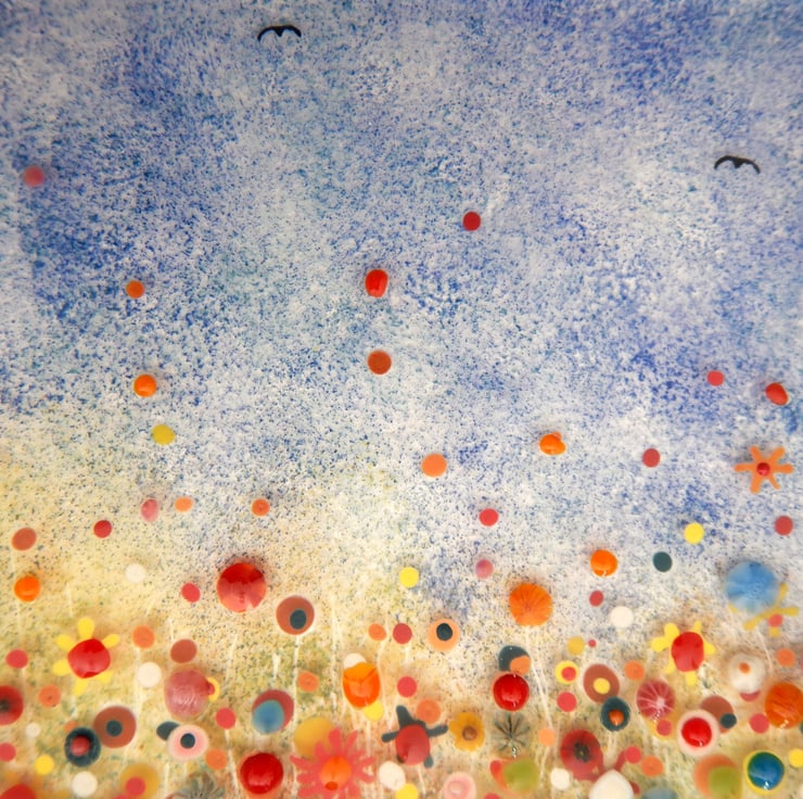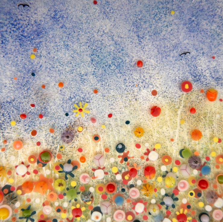 It took 3 firings in my kiln to ensure I had it as perfect as I could. I am very pleased with the end result. This picture is exceptionally eye-catching, crammed full of colours, and has a subtle contrast between sky and flowers.