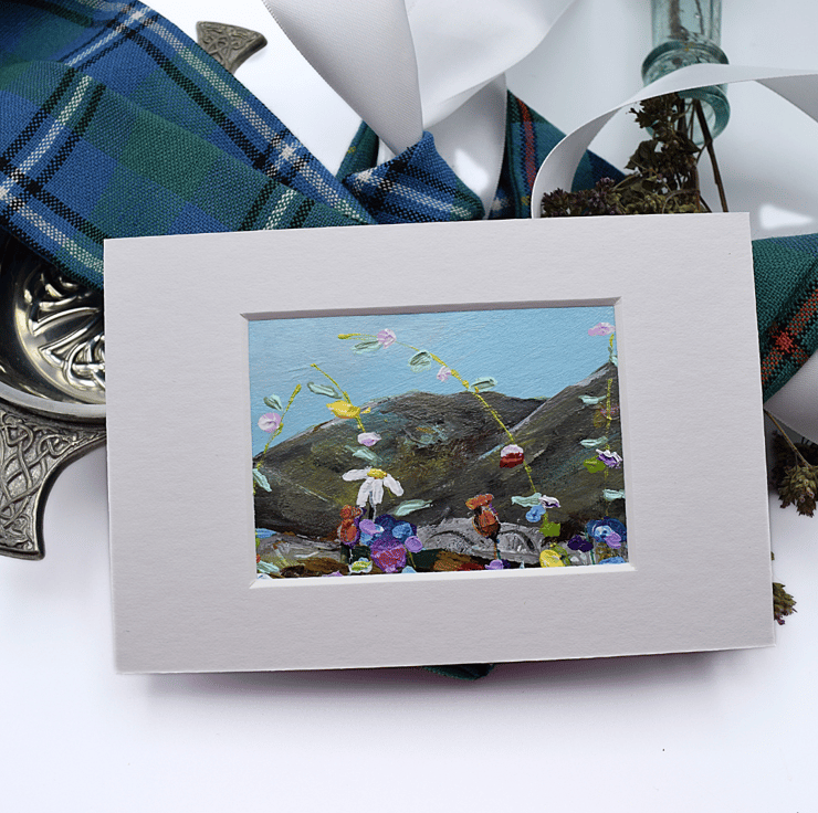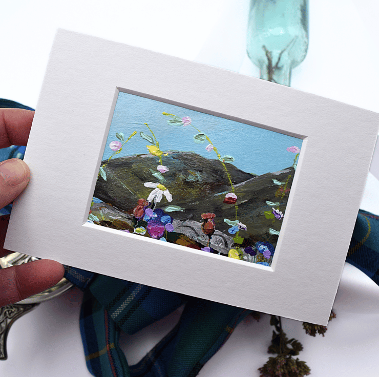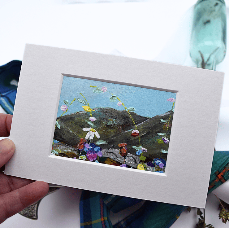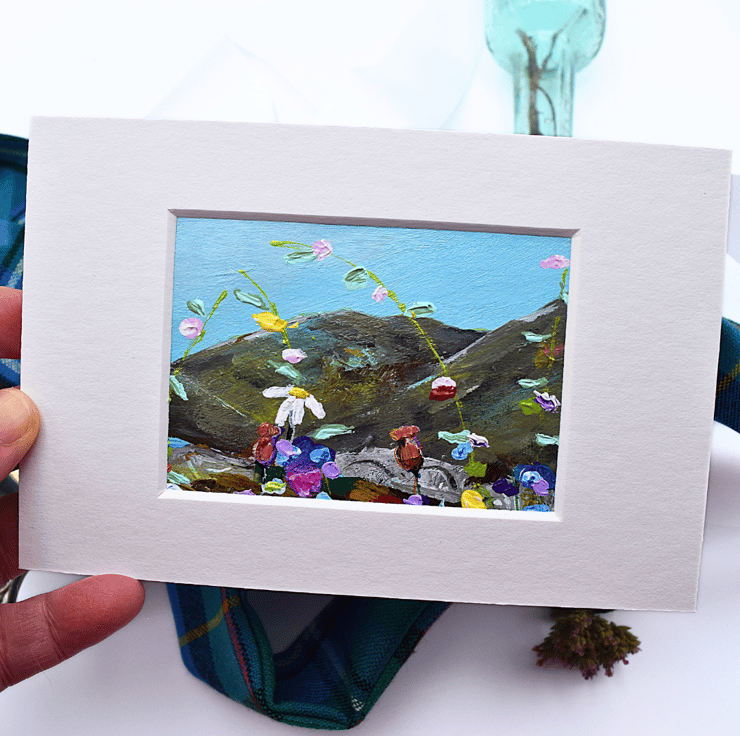 - This is an original, one-off painting at 3.5 x 2.5 inches. The total size including the mount is, 6 x 4 inches (15 x 10 cms).