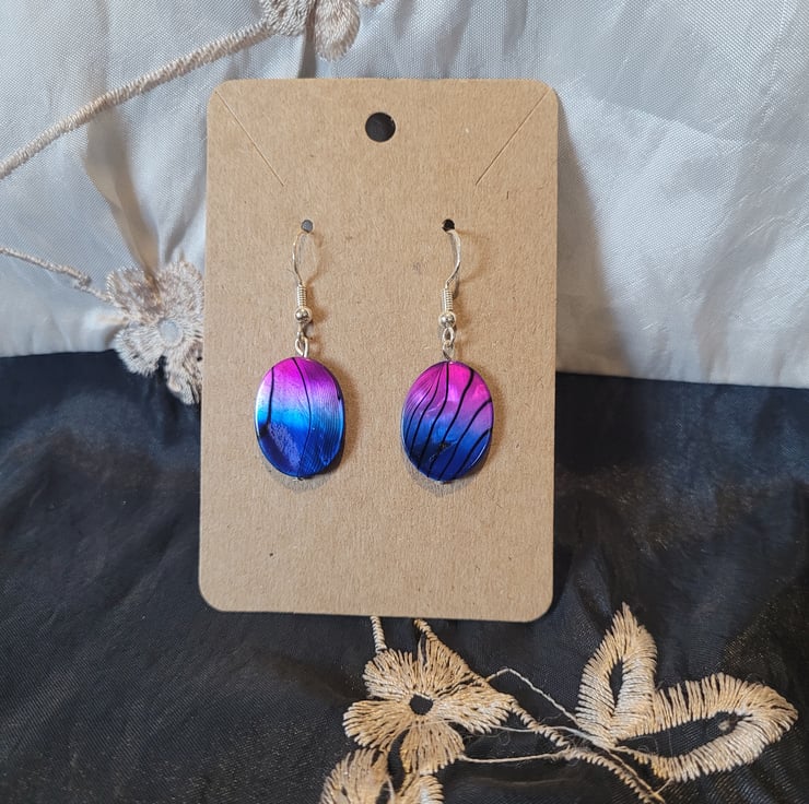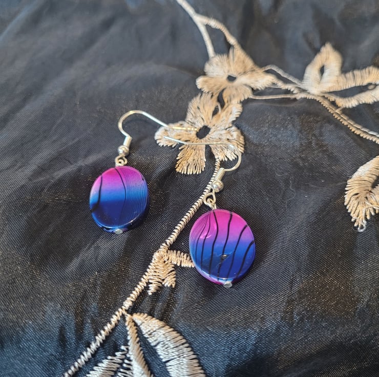 Dangle Earrings, S925 Sterling Silver Hooks with Dyed Shell in Blue and Pink Oval