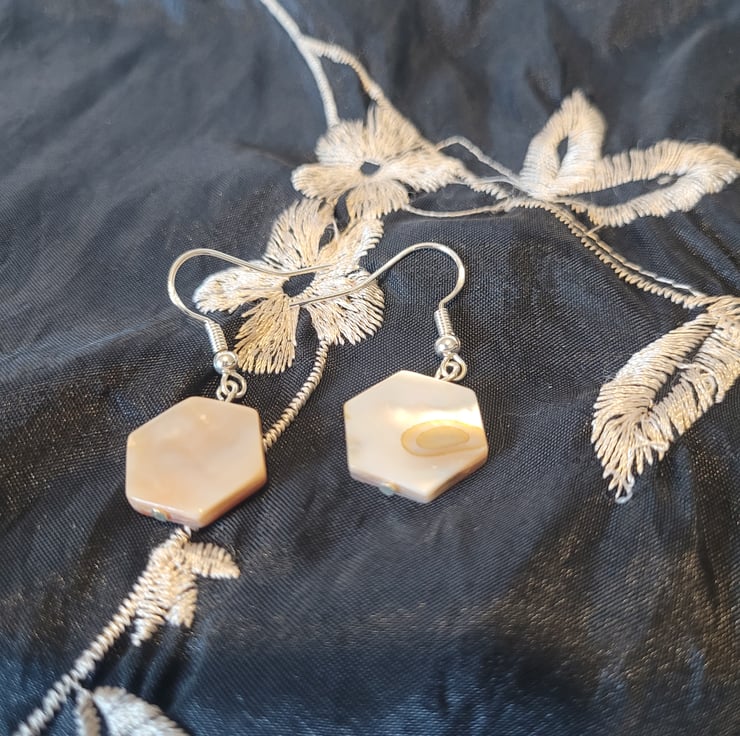 S925 Sterling Silver Earrings - White/Cream Hexagons