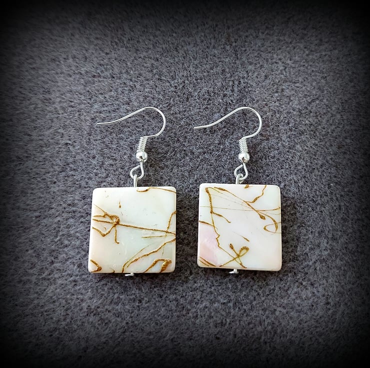 "Cream & Gold Glass Square Charms"