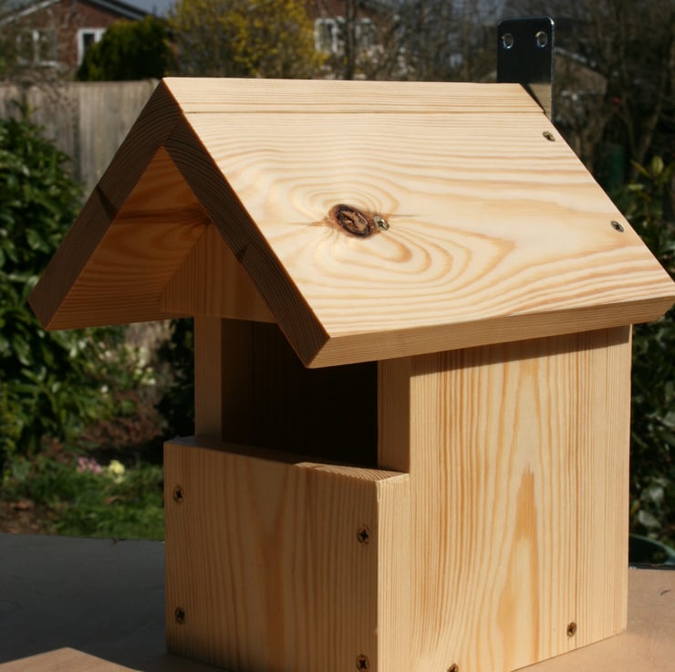 Robins nest box handmade from 21mm thick redwood to give a warm and secure place to rear their young. Position the nest box facing in a North East direction to avoid prevailing wind and rain, not in direct sunlight and within the cover of climbing or overhanging vegetation, garage or shed.