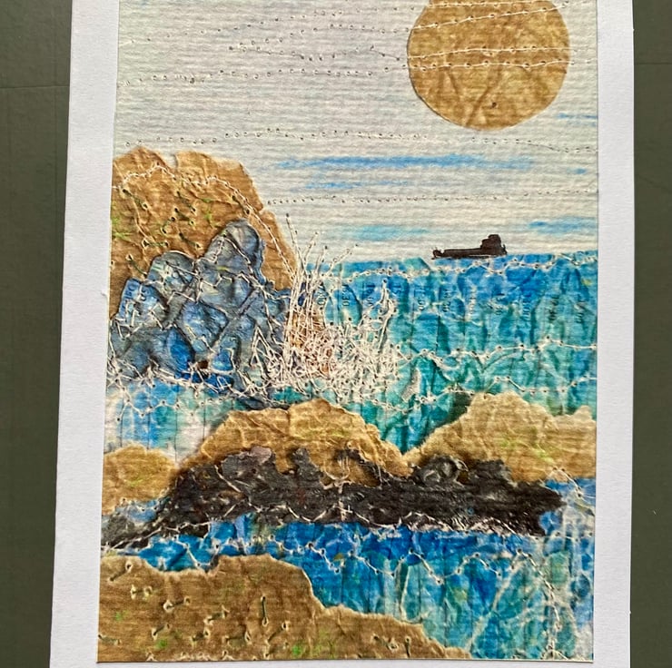 The image is printed onto archival water colour paper then attached to 250gms plane white card stock. It comes with a simple white envelope in a protective cellophane pocket.