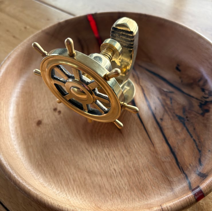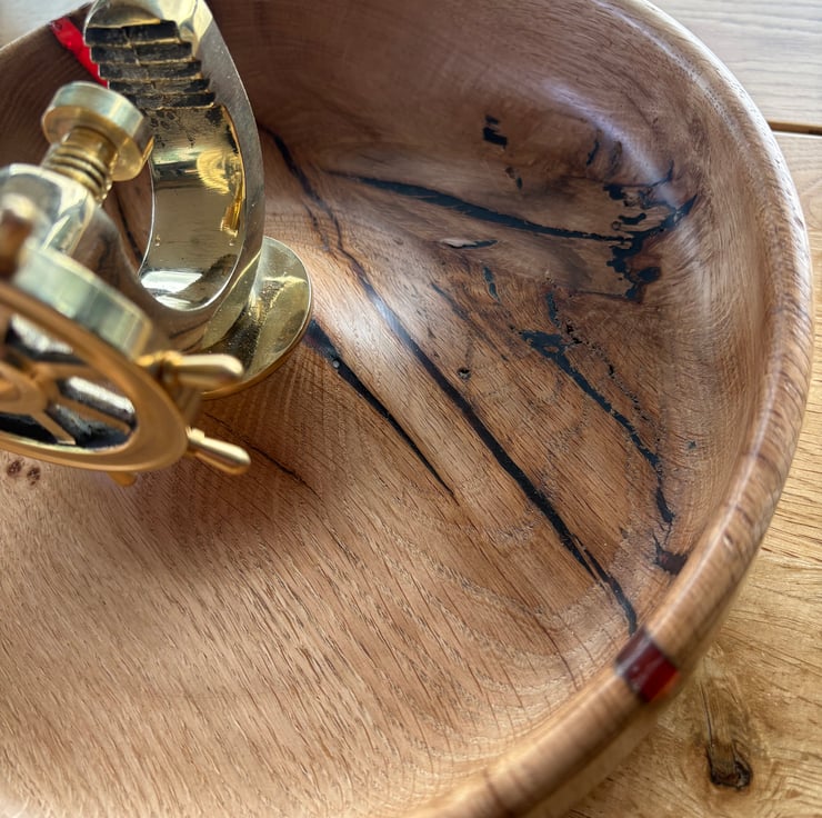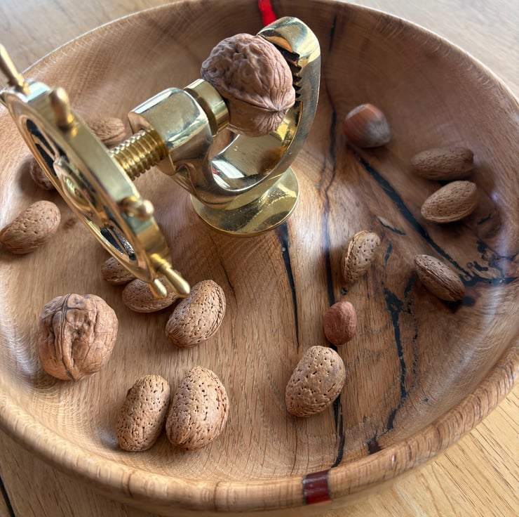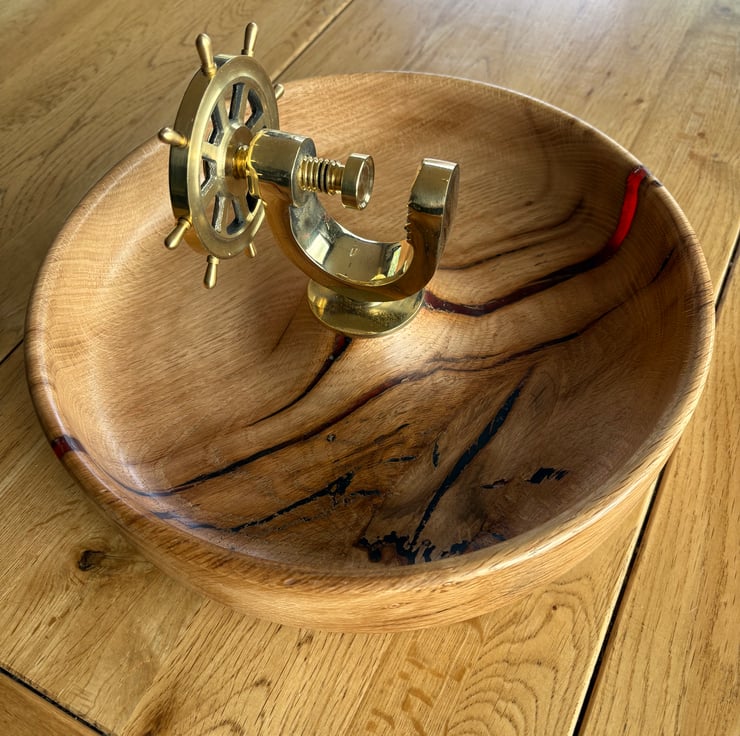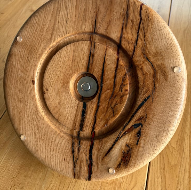 Turned from oak, cut from an 18th century beam from a Yorkshire Mill
