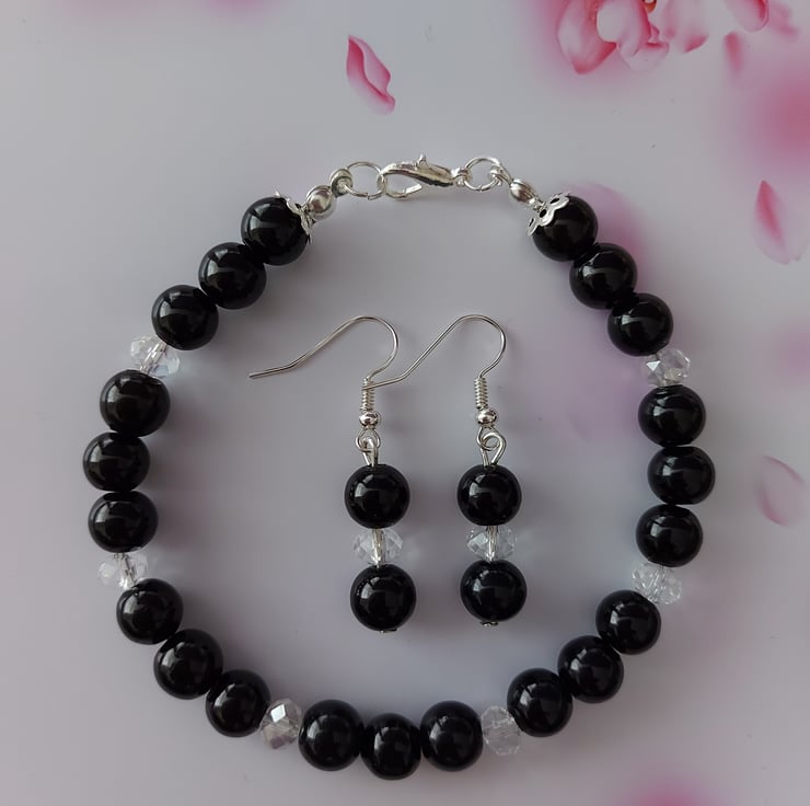 "Black Glass Pearls & Clear Crystals"