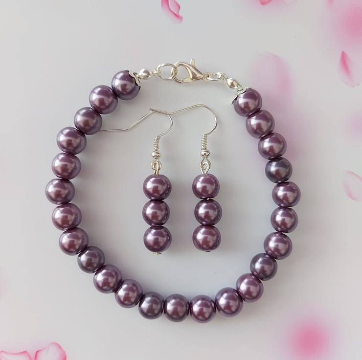 8mm Glass Pearl & Crystal Bracelet & Earrings Set in Card Gift Box.