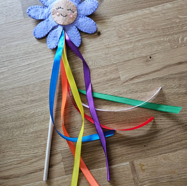 This handmade child's fairy wand is a whimsical accessory perfect for any little girl who loves fairy themes. The wand is designed with attention to detail, making it an enchanting addition to a fairy costume or dress-up play. With its magical appearance, this fairy wand is sure to spark imagination and bring a touch of fantasy to any little one's playtime or special occasion. Perfect for creating a magical experience for young girls who love fairy tales and make-believe adventures.