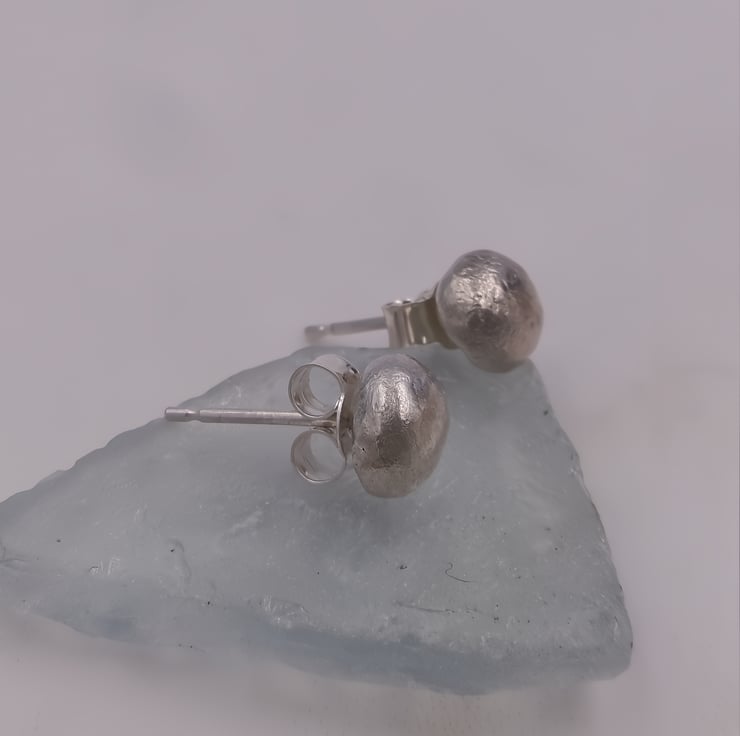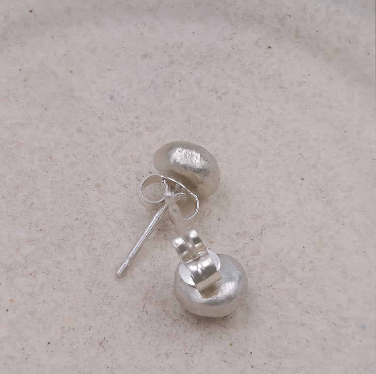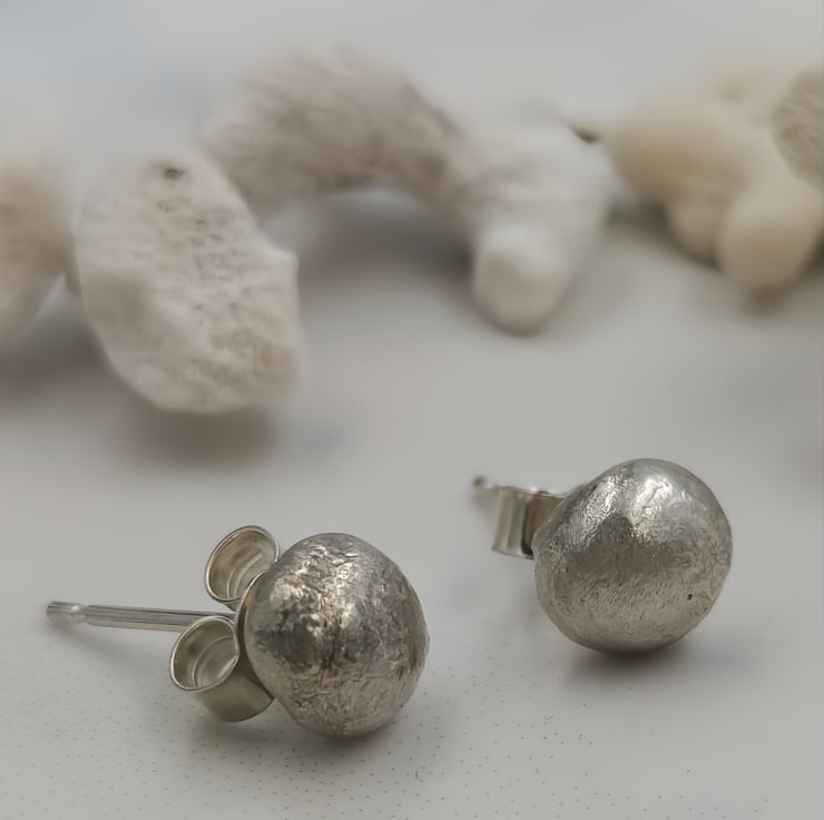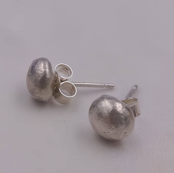 Elevate your look with these stunning molten silver stud earrings, designed to bring an organic and modern touch to your jewellery collection. Each earring is handcrafted from sterling silver, featuring a freeform, molten-inspired texture that shimmers beautifully in the light. With their minimalist design these studs are perfect for everyday wear or adding a subtle statement to any outfit.