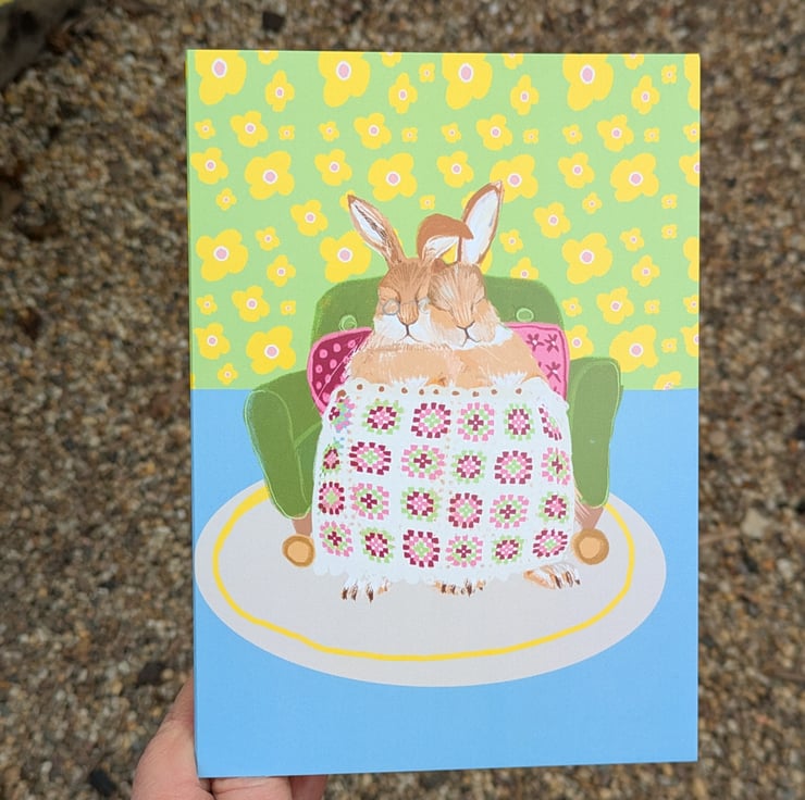 I started drawing the granny squares and suddenly there were two cute bunnies fast asleep under it.
