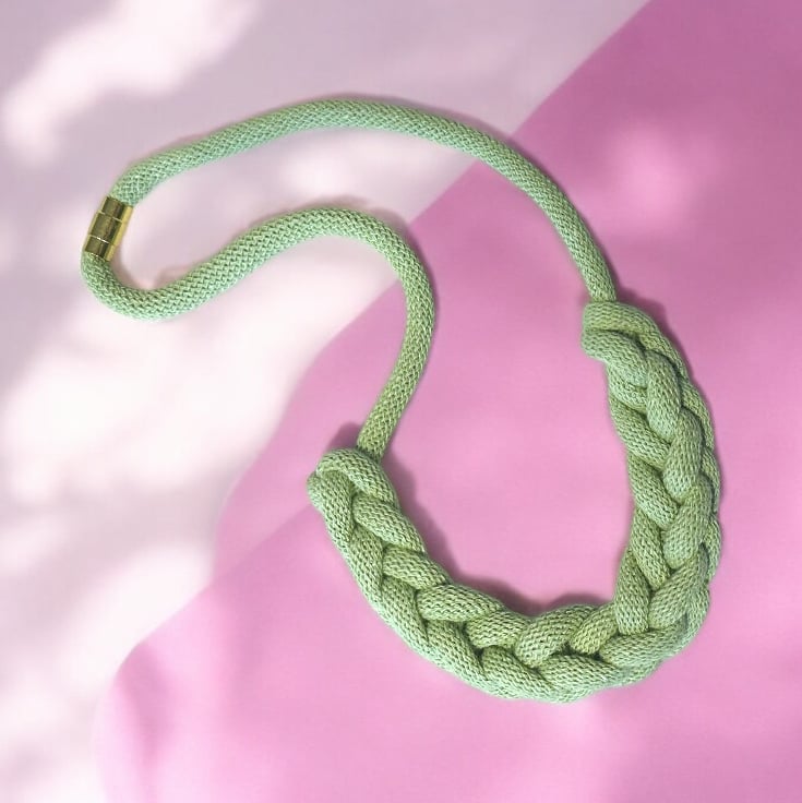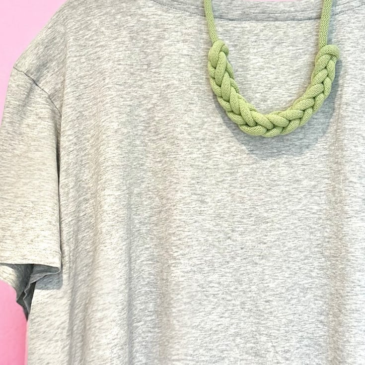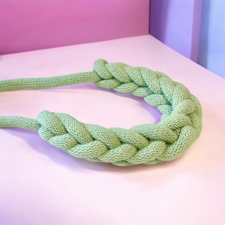 Add a splash of bold, boho charm to your style with this Lime Cream chunky braided macrame necklace. Handmade with a soft, 9mm recycled cotton cord, this statement piece is designed to stand out while keeping you comfy and effortlessly stylish.