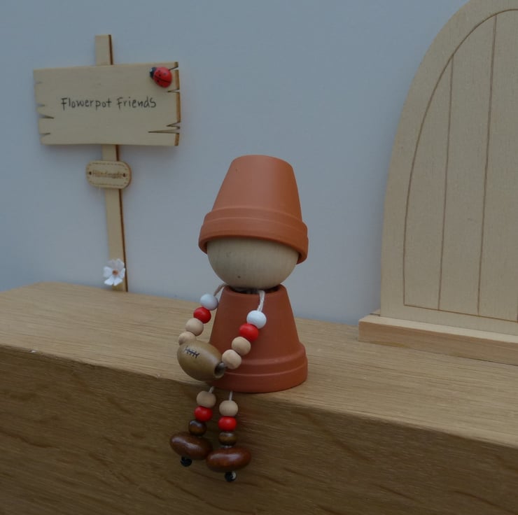 A terracotta Flowerpot friend with a hand decorated wooden rugby ball, sitting at approximately 7.5cm high.