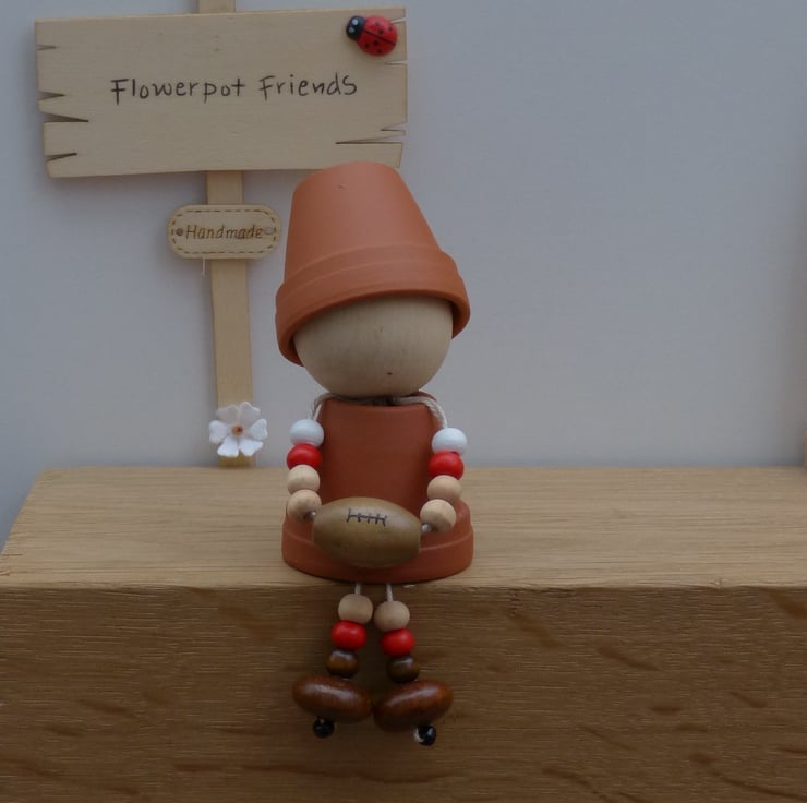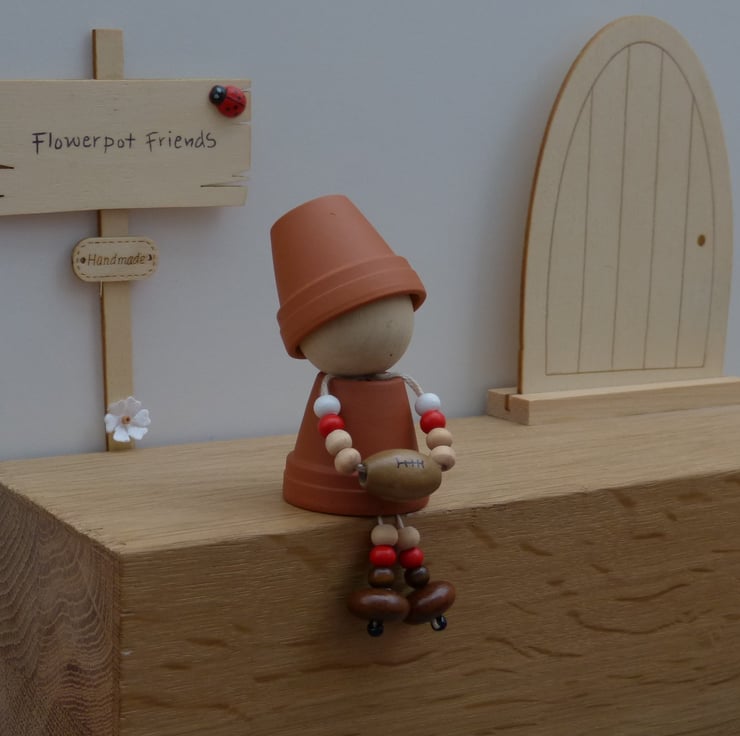 This little Flowerpot friend is ready and waiting for a game of Rugby, comes with own ball!