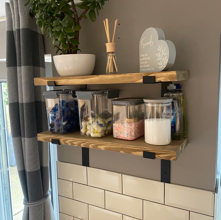 reclaimed wood shelving made by hand in our Lincolnshire based workshop. These are supplied with brackets and fixings. If you select natural in the options this item will be sent out with no finish on the shelving so you can finish the item anyway you wish. should you want a custom colour/length that are not in the options then don't hesitate to contact us.