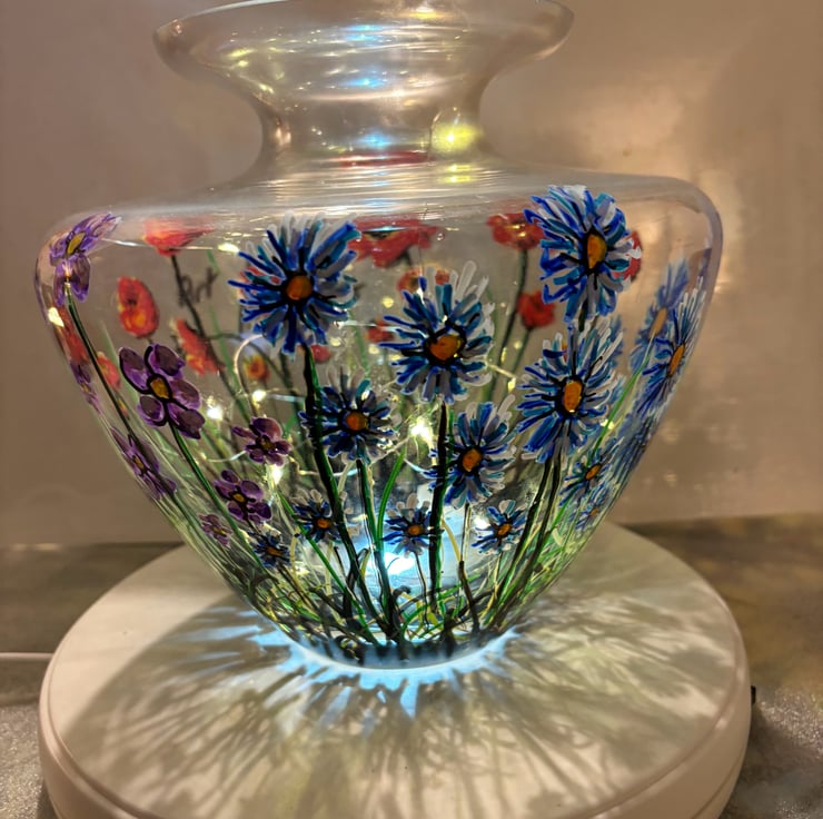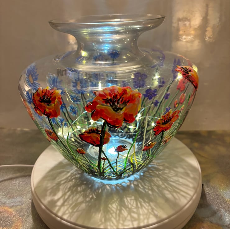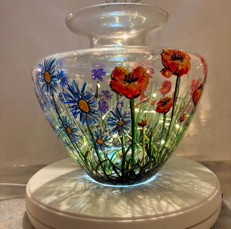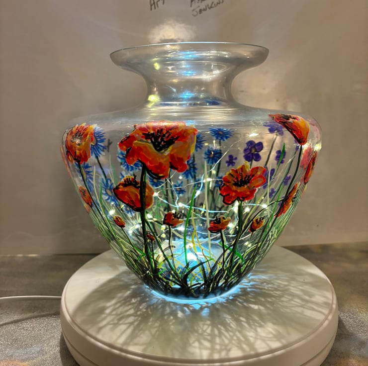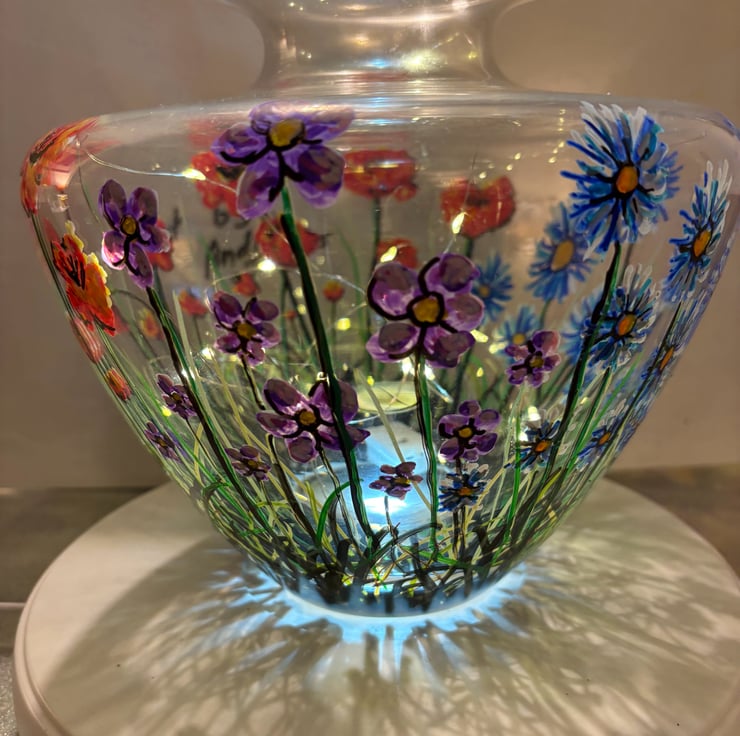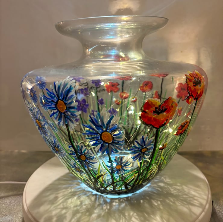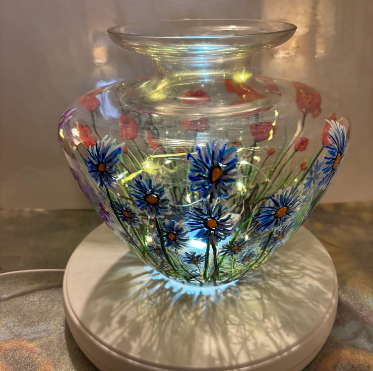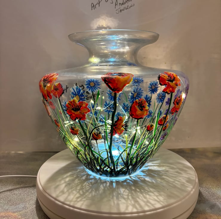 A hand painted and fired glass vase by Andrew Jenkins