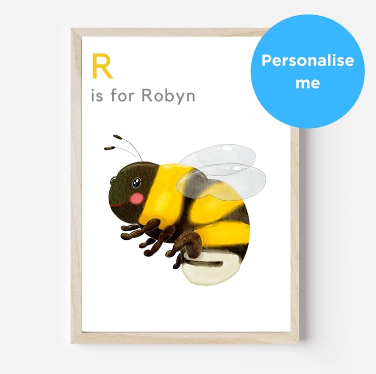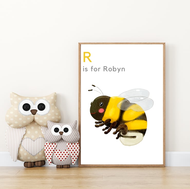 Why not personalise your print to make it extra special? Can also be printed with the words 'B is for bee' or supplied without any wording, if preferred.