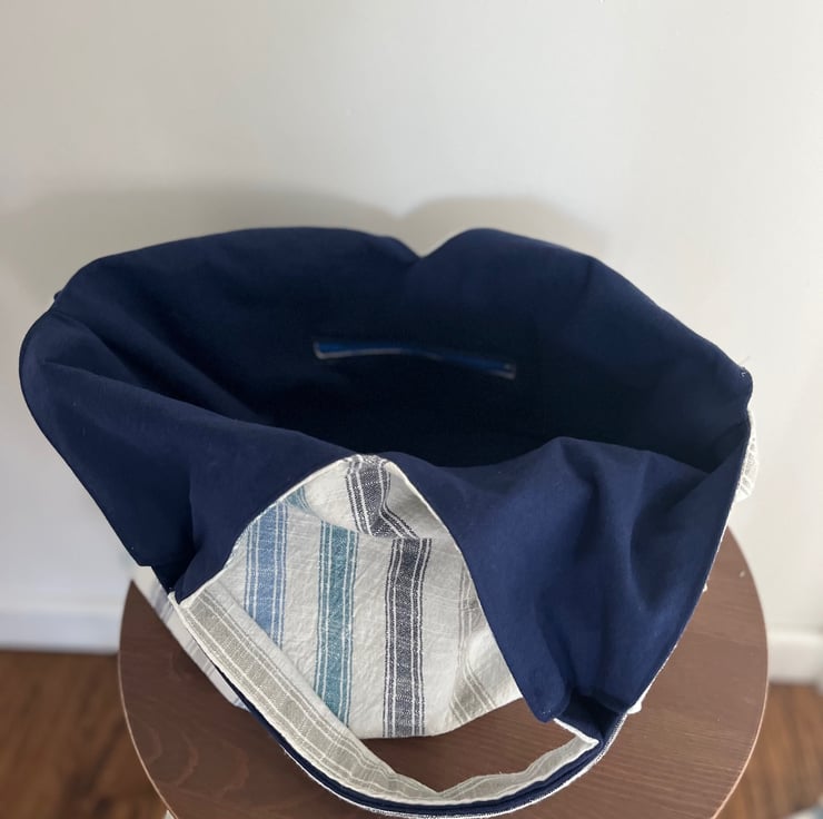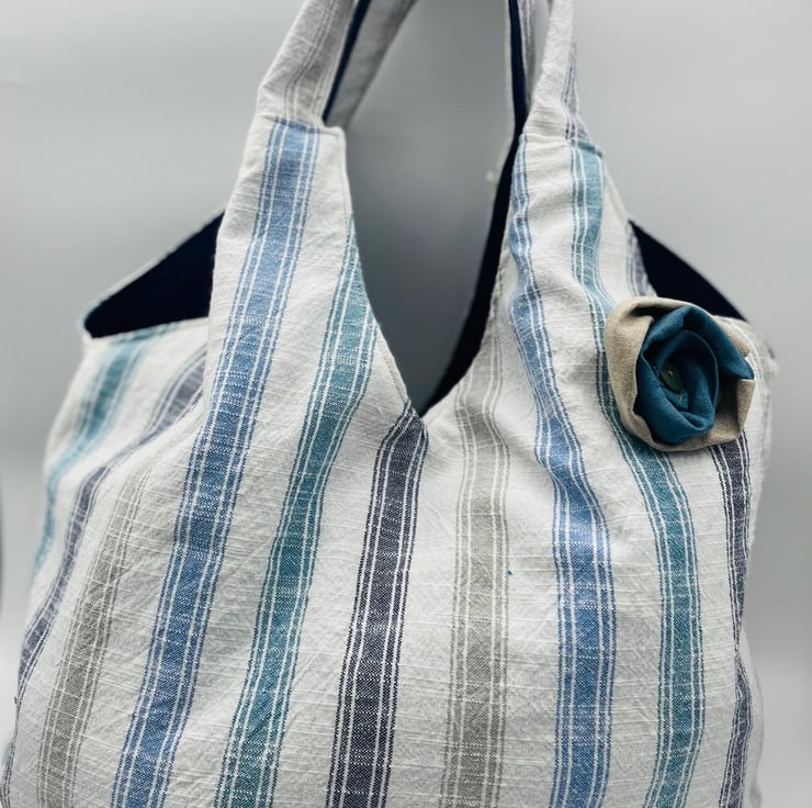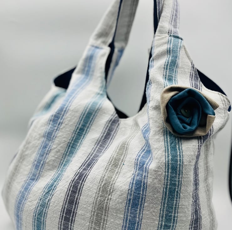 Crafted from a beautiful blend of linen and cotton, the soft striped pattern in blues, greys and creams works with almost any outfit. The relaxed, roomy shape gives you plenty of space for essentials while an internal zip pocket keeps smaller items secure.