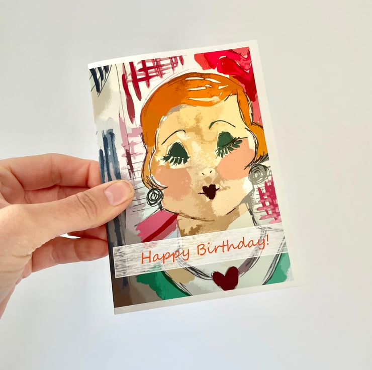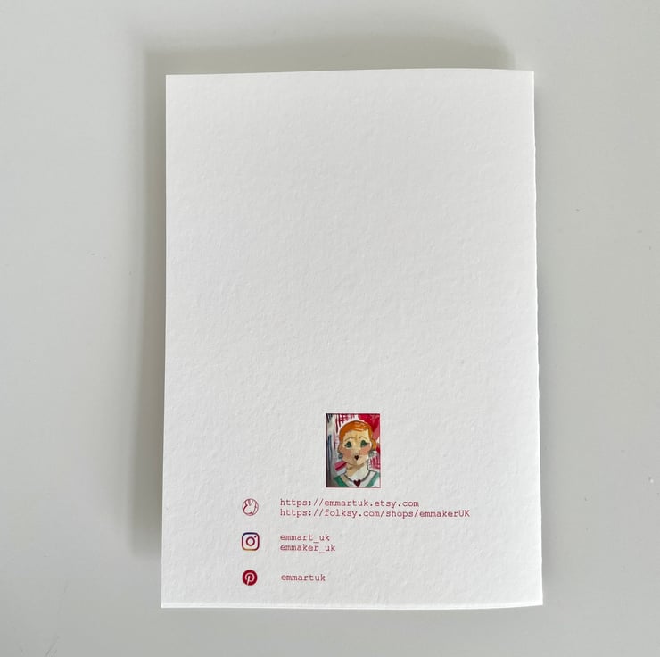 The card is 4.1 x 5.8 inches (approx. 105 x 147 mm, A6) in size and has been left blank inside for you to add your own message. The cardstock is Smooth Fine Art Production 312gsm.