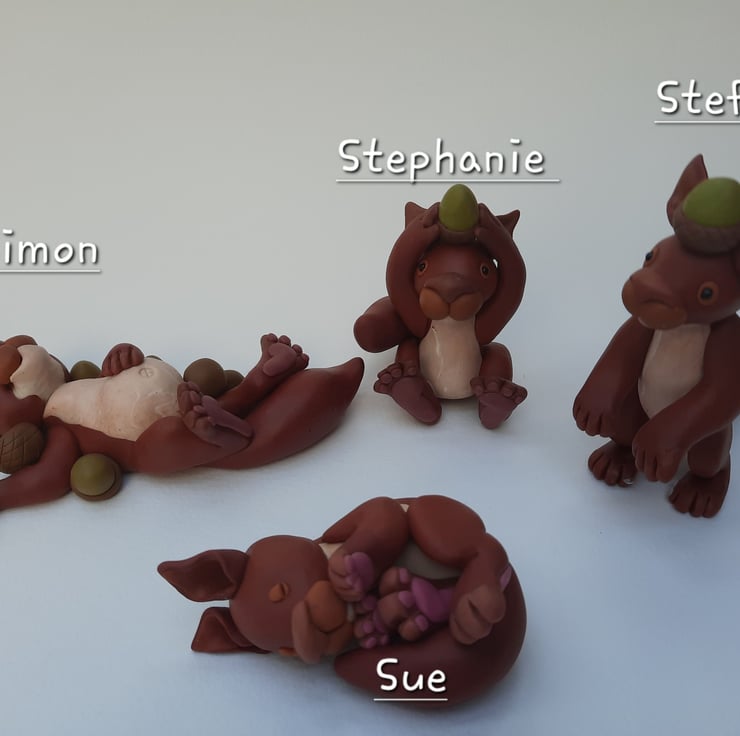 Commission a woodland friend. These cute little polymer clay figures, part of a series I have made. All animals are entirely handmade, and therefore unique. This commissioning service to replicate any of the models I make, or any other Animal you might like, might be based on the ones pictured but yours will always be entirely your own and special. All these Animal friends are approximately 7 cm long/or tall and about 5-6 cm wide, and weigh about 50g. These are sturdy little models, but they aren't meant to be toys and there are parts that could be chocking hazards. Each animal has a whole family, and a collection of wild friends, have a look through my shop to find more. If you would like a really bespoke little woodland friend: different species, or poses, feel free to message me. I aim to fulfill all orders as soon as possible, depending on how busy I am; for one of these models waiting time is approximately 1 week. Feel free to message me to find out exact waiting times. When ordering let me know the name of the Animal friend you would like me to make.