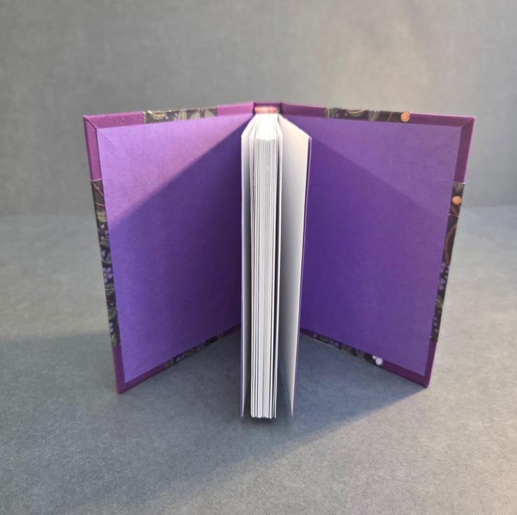 Purple colourway using printed decorative paper, with purple endpapers.
