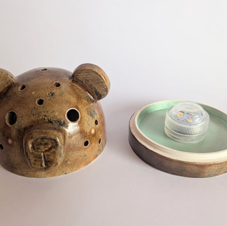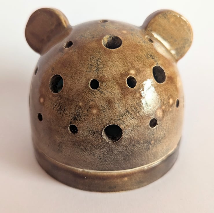These bear head tealight holders were a really fun experiment and learning curve in my ceramics journey. I had an image in my head and these are the result. I used a lot of techniques I hadn't tried before and had a lot of fun making them.