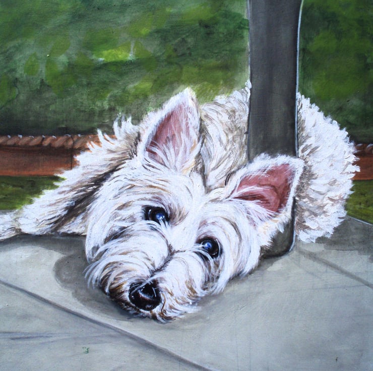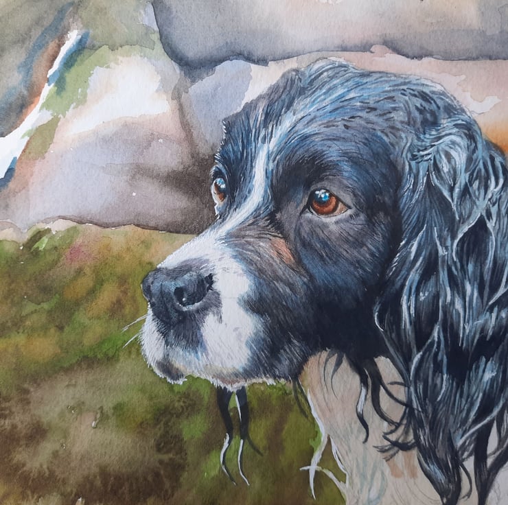 Commission a pet portrait. 10" x 12". Before ordering a portrait drop me a message and we can sort out the details, I work from photos which can be emailed to me after ordering. I do offer other sizes so please feel free to contact me if you want something to a specific size (before ordering). I mostly work in watercolour however, if you would like a canvas in Acrylic paint then please contact me (before ordering). Prices are for unmounted pictures; If you would like the Portrait mounted there is an additional £20 fee. I can offer framing services but this again is dependent on the size and type of frame required for which there will be an additional fee. The time it will take me to complete a portrait depends on the number of figures in the finished painting a rough estimate is approximately 3 days per figure; this is only very rough as a single portrait with background can take about a week. the price listed is for up to two figures: two pets or one person and one pet, there is an additional fee for more people or pets in a portrait, I am very happy for you to contact me and ask any questions or to have a chat about any ideas you have for commissions.