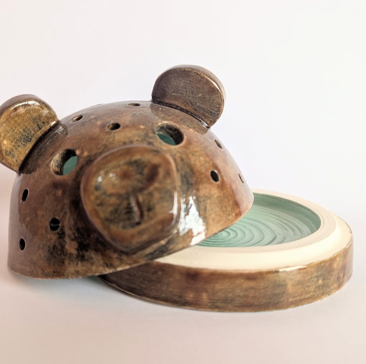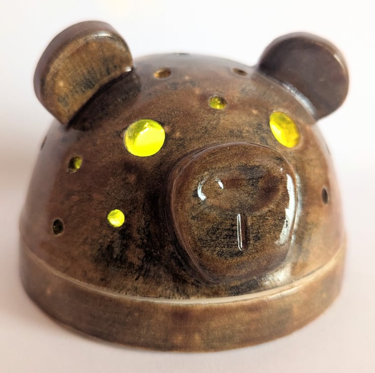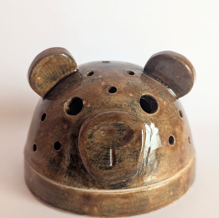 These bear head tealight holders were a really fun experiment and learning curve in my ceramics journey. I had an image in my head and these are the result. I used a lot of techniques I hadn't tried before and had a lot of fun making them.