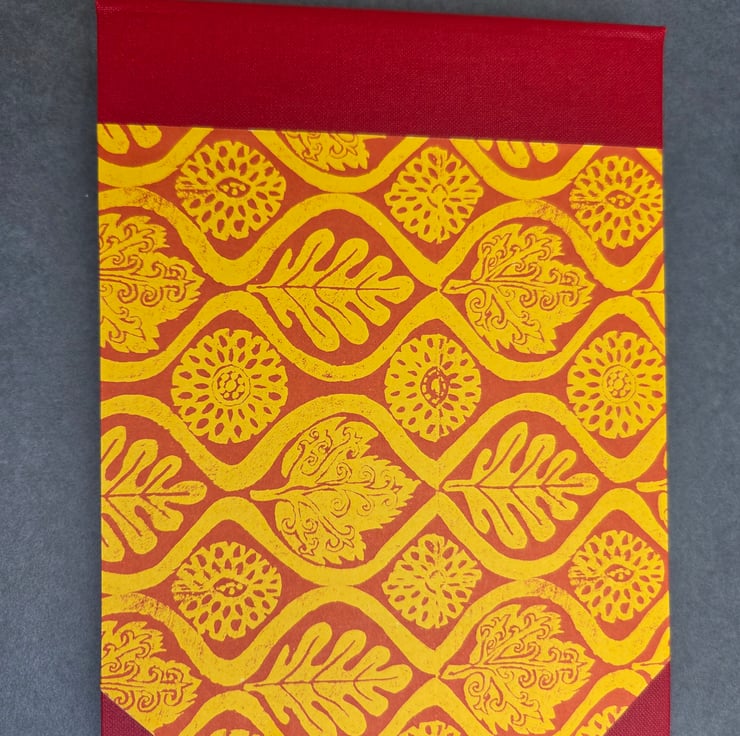 Yellow and red colourway using Cambridge Imprint papers, with red endpapers.