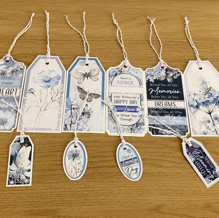 All of the gift tags are of a lovely shade of pale blue & has silver foiled accents & borders.