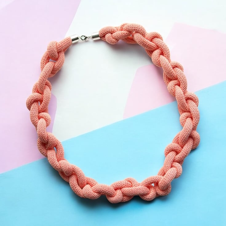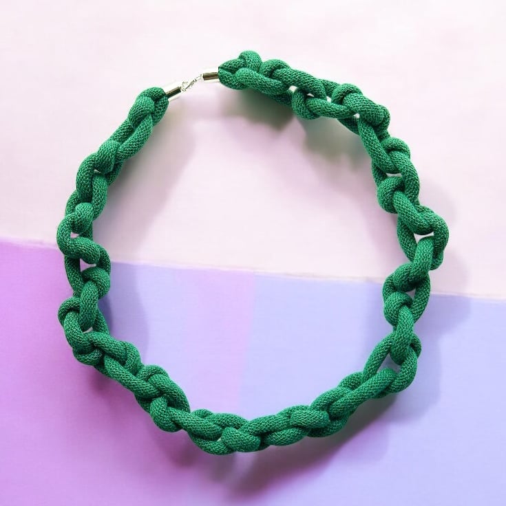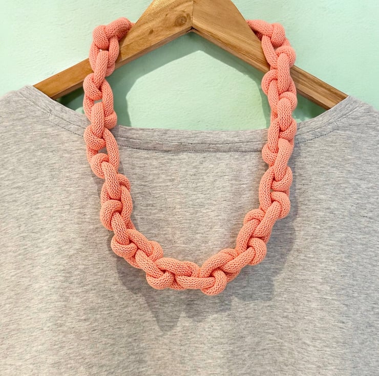 Inspired by the laid-back charm of bohemian style, this necklace brings together the joy of bold, chunky accessories and the comfort of soft, sustainable materials. Each knot is thoughtfully hand-tied, creating a tactile, playful piece that celebrates self-expression and individuality. It’s designed for those who love embracing colour, texture, and unique style.