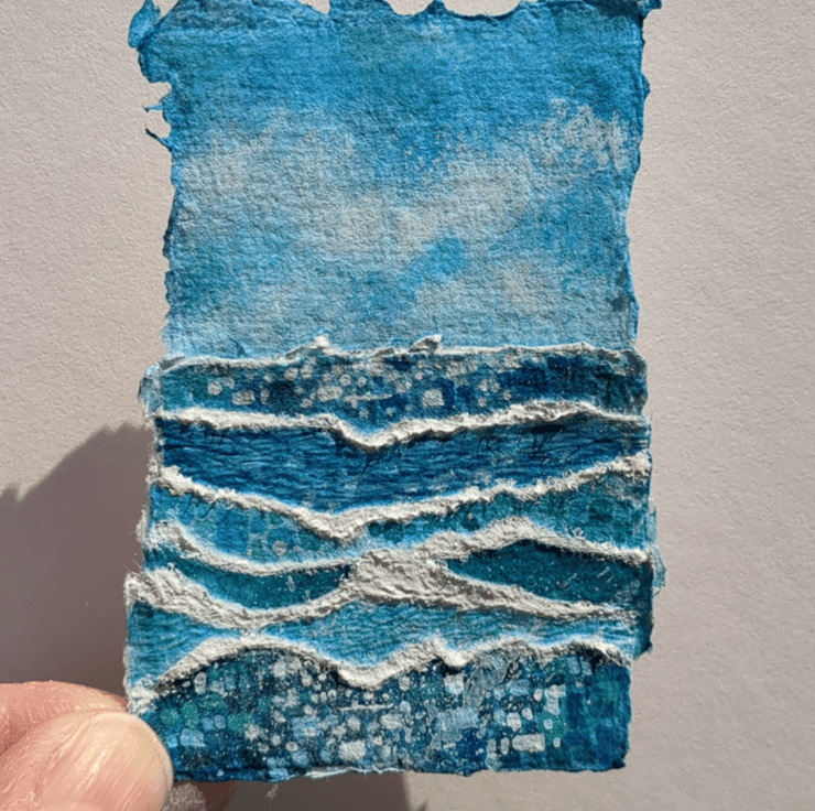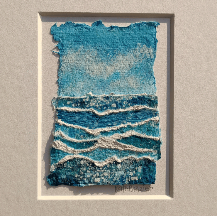 'Ocean Spray' is a tiny, mixed media collage float mounted into a custom A5 mount.