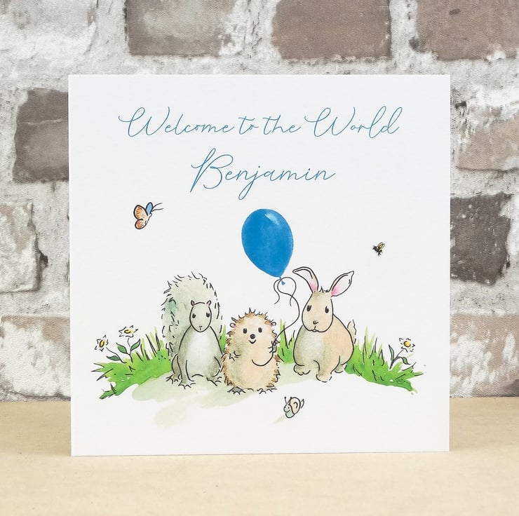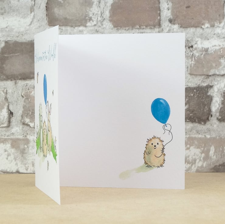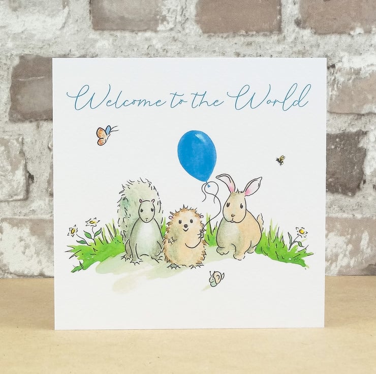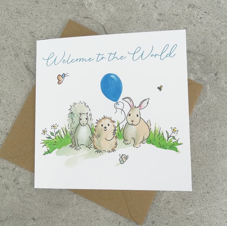This new baby boy card has been printed with my original animal watercolour artwork on 'New' white textured FSC approved 280gsm card and comes with a brown kraft envelope protected in a clear biodegradable bag.