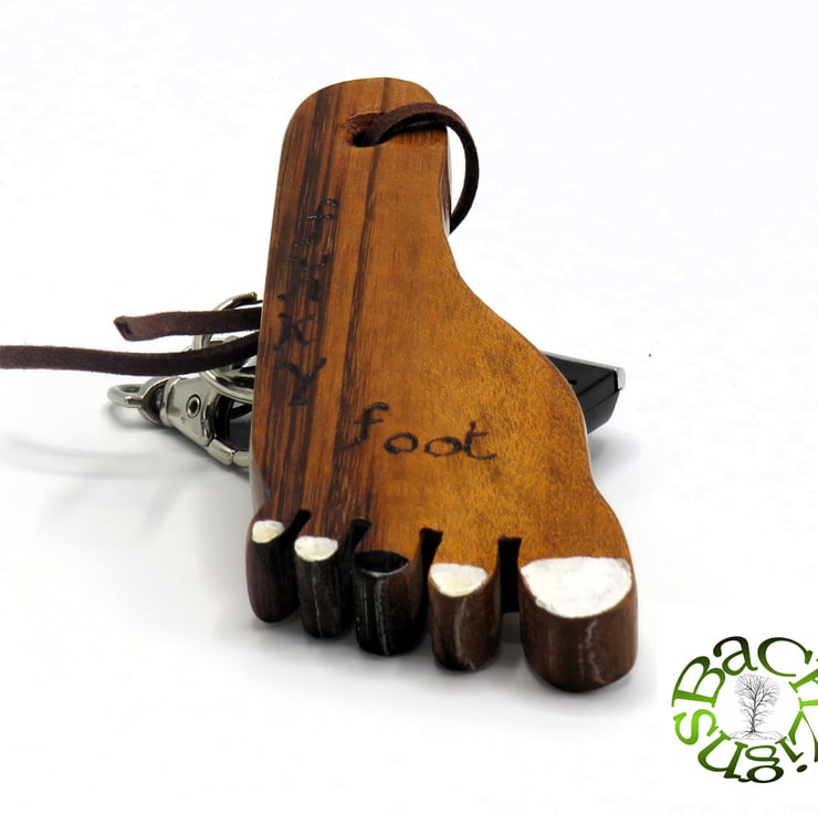 To add some humour to our shop, we have created this funky foot, a blast from the past as I had one that I made in the 1980’s. It can be used as key ring symbols or attach to your favourite bag or just an item to look at. They each have different toe nail colours and woods, either light coloured birch plywood or darker Tigerwood.